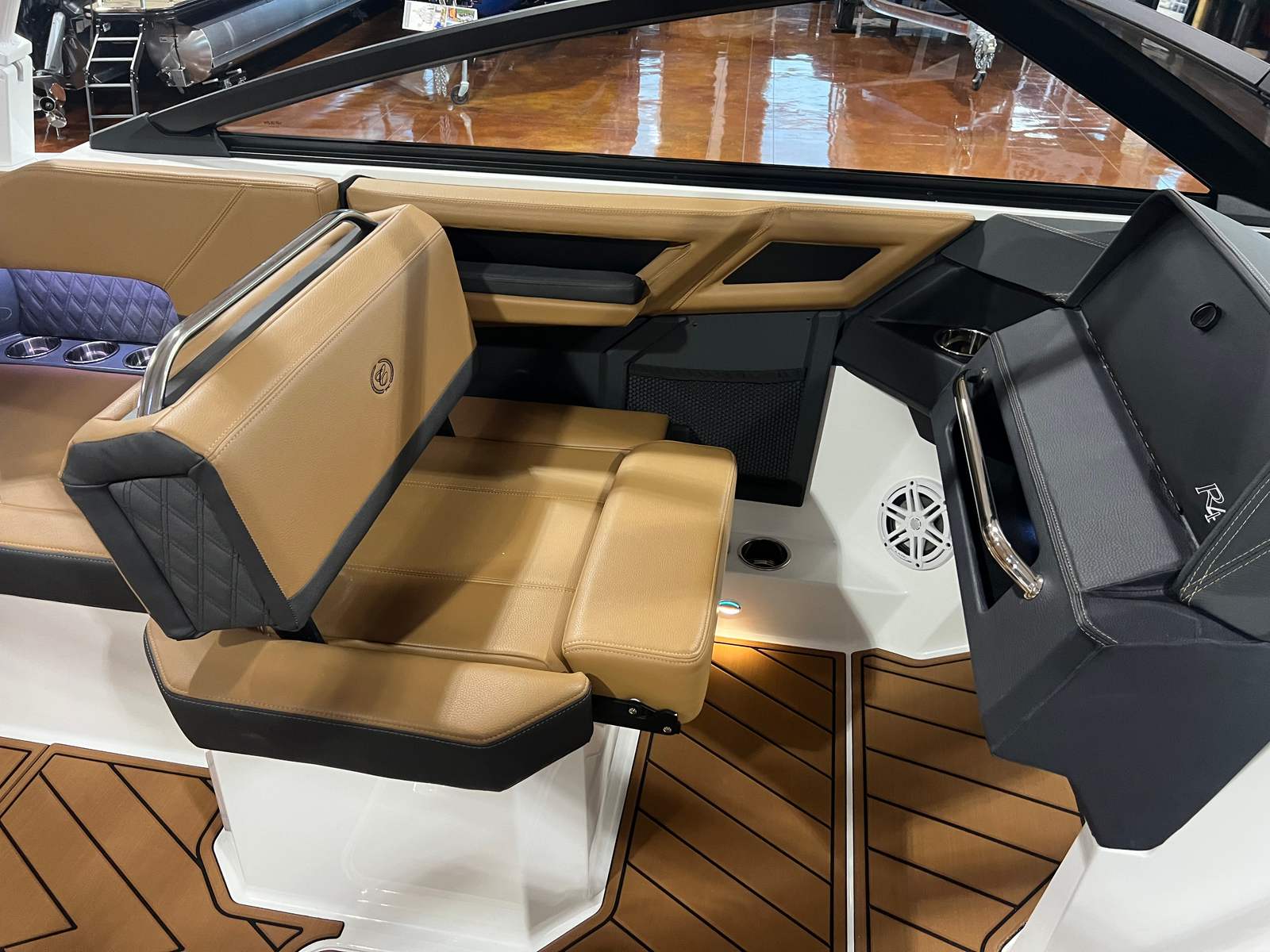 The 2026 Cobalt R4 is a 24.25-foot Bowrider that perfectly balances spaciousness and agility. Its Deep Teal hull side and bottom, accented by a crisp White stripe, create a striking visual presence that stands out at any marina or on any lake. The interior, finished in a sophisticated blend of Caramel and Carbon, invites you and your guests to relax in comfort and style. As a new boat, the Cobalt R4 offers the latest in design and technology, ensuring you enjoy the best that modern boating has to offer.