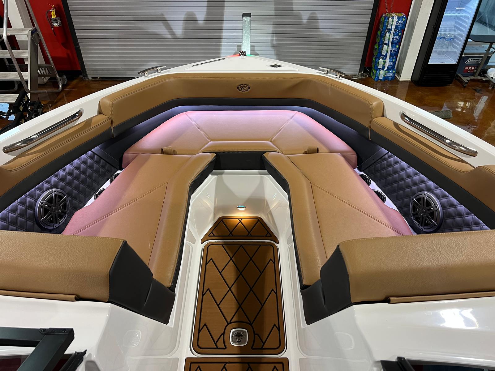 At the heart of the Cobalt R4 is a single Volvo V8 300CE DP engine, delivering an impressive 300 horsepower. This robust powerplant provides exhilarating acceleration and smooth cruising, making it ideal for watersports, leisurely cruises, or quick trips across the bay. The advanced dual-propeller drive system enhances handling and maneuverability, ensuring precise control whether you are docking, towing, or carving through open water. With this engine, the Cobalt R4 offers a thrilling yet refined boating experience that appeals to both seasoned enthusiasts and newcomers alike.