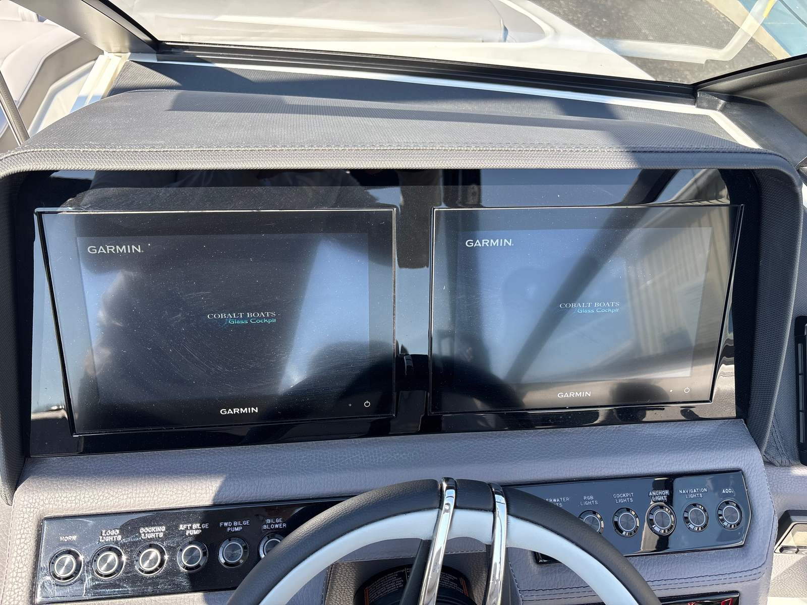 The Cobalt R4 is loaded with features that enhance both its functionality and its appeal. The Aft Facing Rumble Seat offers a unique and comfortable spot to relax and take in the scenery, while the Arch E2 Black Folding with Bimini in Ebony provides shade and style, making it easy to enjoy sunny days without worry. The boat’s Battery Maintainer/Charger ensures your power systems are always ready for action, while the Cobalt Letters in Black Satin add a touch of sophistication to the boat’s branding. Stainless Steel Docking Lights not only enhance the R4’s appearance but also provide practical illumination for evening arrivals and departures. Every detail, from the color accents to the premium materials, reflects Cobalt’s dedication to quality and innovation.