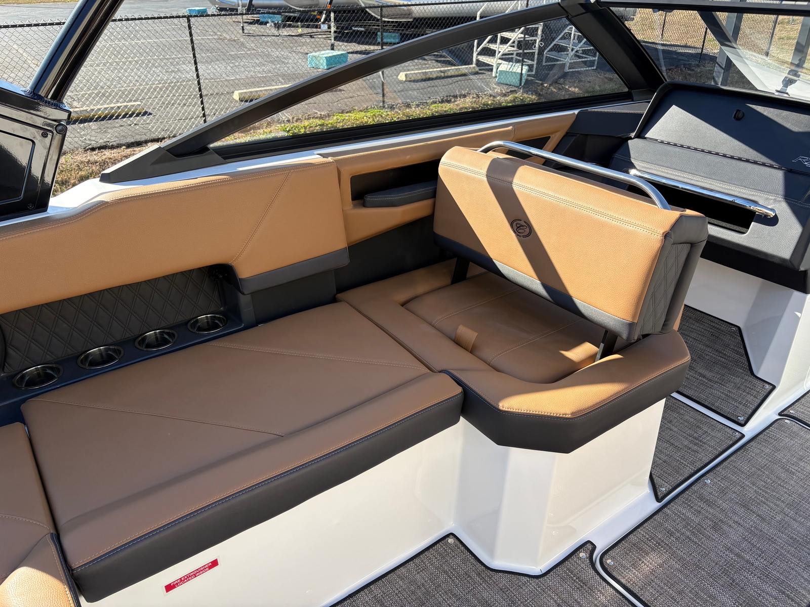 The 2026 Cobalt R4 Bowrider is a masterpiece of modern engineering, measuring an impressive 24.25 feet in length. Its sleek profile and contemporary styling make it a standout on any lake or coastal waterway. The hull features a sophisticated Graphite Gray color with a crisp White accent stripe and a Rich Ebony bottom, creating a striking visual presence. The interior is equally refined, with a luxurious blend of Caramel and Carbon tones that invite you to relax in comfort. As a brand-new model, this Bowrider is ready to deliver years of enjoyment and reliability.