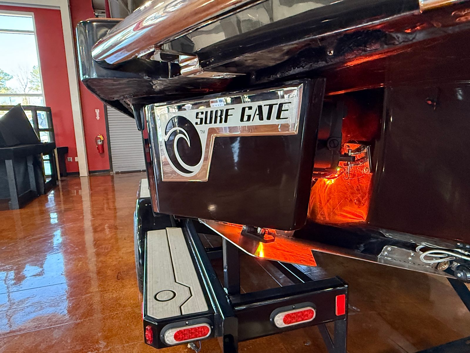 The Cobalt R6 Surf is loaded with premium features that elevate your boating experience to new heights. The dual Garmin 8610 glass cockpit provides intuitive navigation and control, giving you confidence and peace of mind as you explore new destinations. The electric arch in Prisma Black, paired with a stylish Ebony Bimini, offers both shade and a modern aesthetic, while the stainless steel docking lights ensure safe and easy maneuvering during low-light conditions. The boat’s hull bottom and full colored deck, both finished in Rich Ebony, create a bold and cohesive look that is sure to impress.Inside, the R6 Surf boasts a luxurious interior with Caramel, Carbon, and Ebony tones, complemented by Cobalt letters in Black Satin for a refined touch. The battery maintainer/charger keeps your systems powered and ready for action, while the included flagpole with flag adds a classic nautical flair. Every detail is thoughtfully designed to enhance comfort, convenience, and style, making the R6 Surf a standout among bowrider boats for sale.