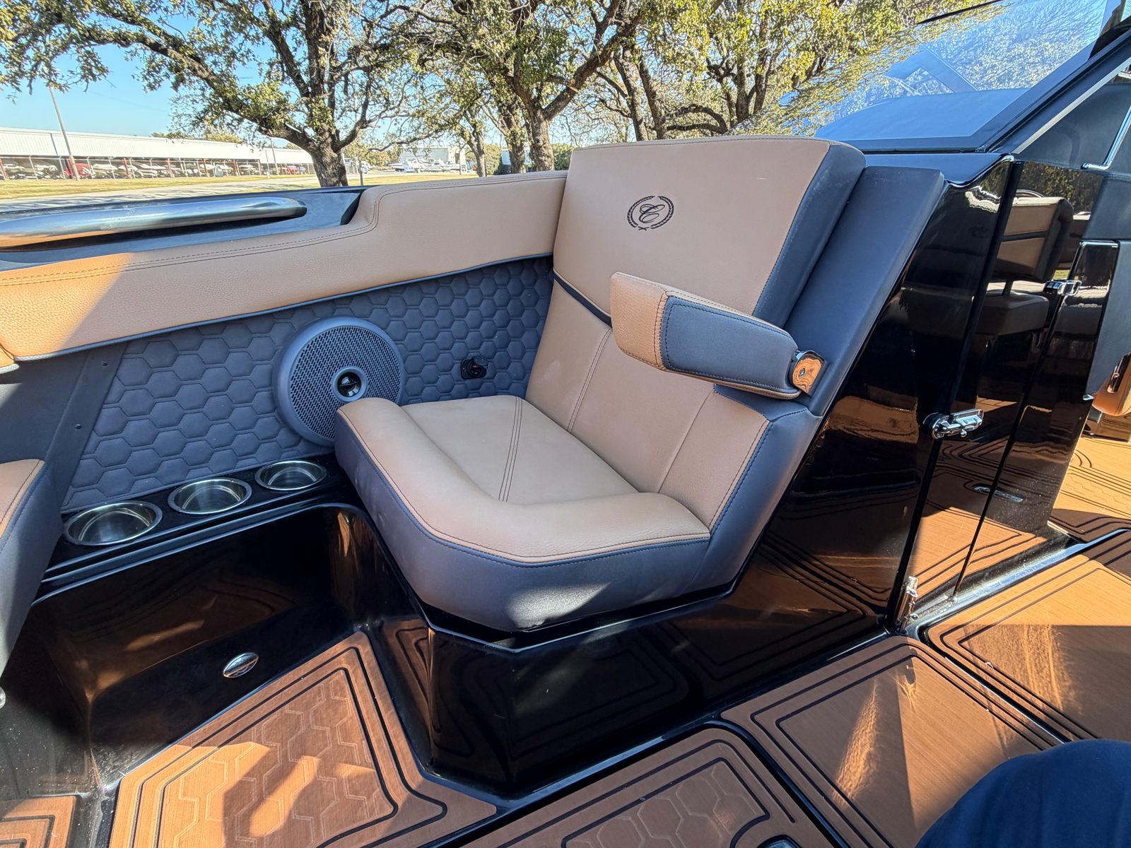 The Cobalt R6 Surf is packed with features that enhance both its functionality and comfort. As a new model, it incorporates the latest advancements in marine technology and design. The spacious bowrider layout provides plenty of seating for friends and family, ensuring everyone can relax and enjoy the ride. The ergonomic helm is designed for intuitive control, allowing the captain to navigate with confidence and ease. Premium materials and finishes throughout the boat create an inviting atmosphere, perfect for socializing or unwinding after a day of adventure.