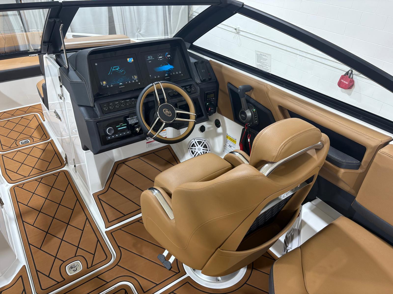 The Cobalt R6 is loaded with premium features that enhance both comfort and functionality. The Arch - E2 in White with a Gray Bimini provides stylish shade and protection from the sun, allowing you to enjoy long days on the water in comfort. The interior is finished in a luxurious Caramel and Carbon color scheme, complemented by a Leather Steering Wheel Upgrade in Caramel and Black for a refined touch at the helm. Stainless Steel Docking Lights not only add to the boat’s striking appearance but also improve visibility and safety during evening outings.For navigation and control, the Glass Cockpit features dual Garmin 8610 displays, offering state-of-the-art technology for chart plotting, system monitoring, and more. The Battery Maintainer/Charger ensures your boat is always ready to go, keeping your electrical systems in peak condition. Every detail, from the hull design to the upgraded steering wheel, reflects Cobalt’s commitment to quality and innovation.