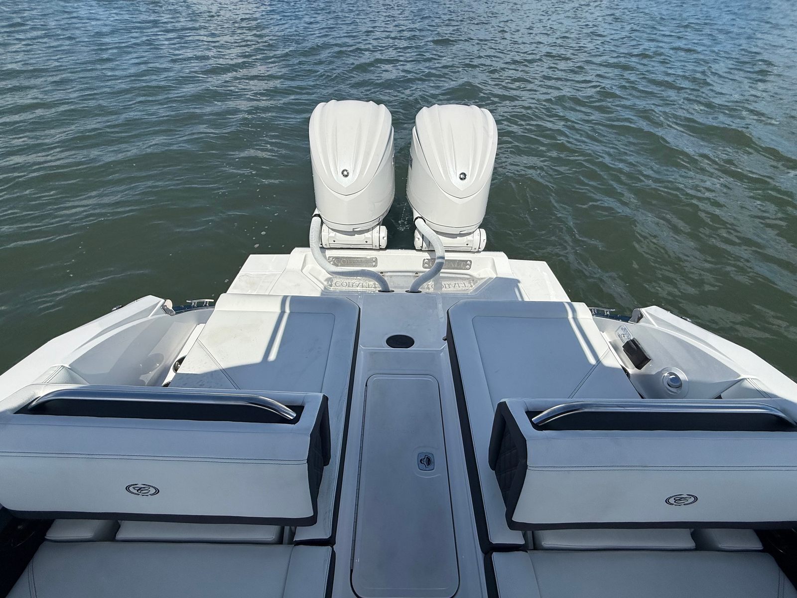 The Cobalt R8 OB is packed with premium features that elevate your boating experience. The battery charger ensures your boat is always ready for action, while the board ladder on the port side makes it easy to get in and out of the water after swimming or water sports. The bow tonneau cover in elegant ebony protects your boat’s interior from the elements, and the Cobalt letters in white satin add a touch of sophistication to its striking profile.For those who love to entertain, the dinette table in solid teal with a cockpit receptacle provides a stylish and functional space for snacks, drinks, or games. Stainless steel docking lights enhance visibility and safety during evening outings, while the electric adjustable seat offers personalized comfort for the captain or guests. The engine flush system by Reverso for twins helps maintain your engines in peak condition, ensuring longevity and optimal performance. A flagpole with a flag adds a classic nautical touch, making your Cobalt R8 OB stand out wherever you go.