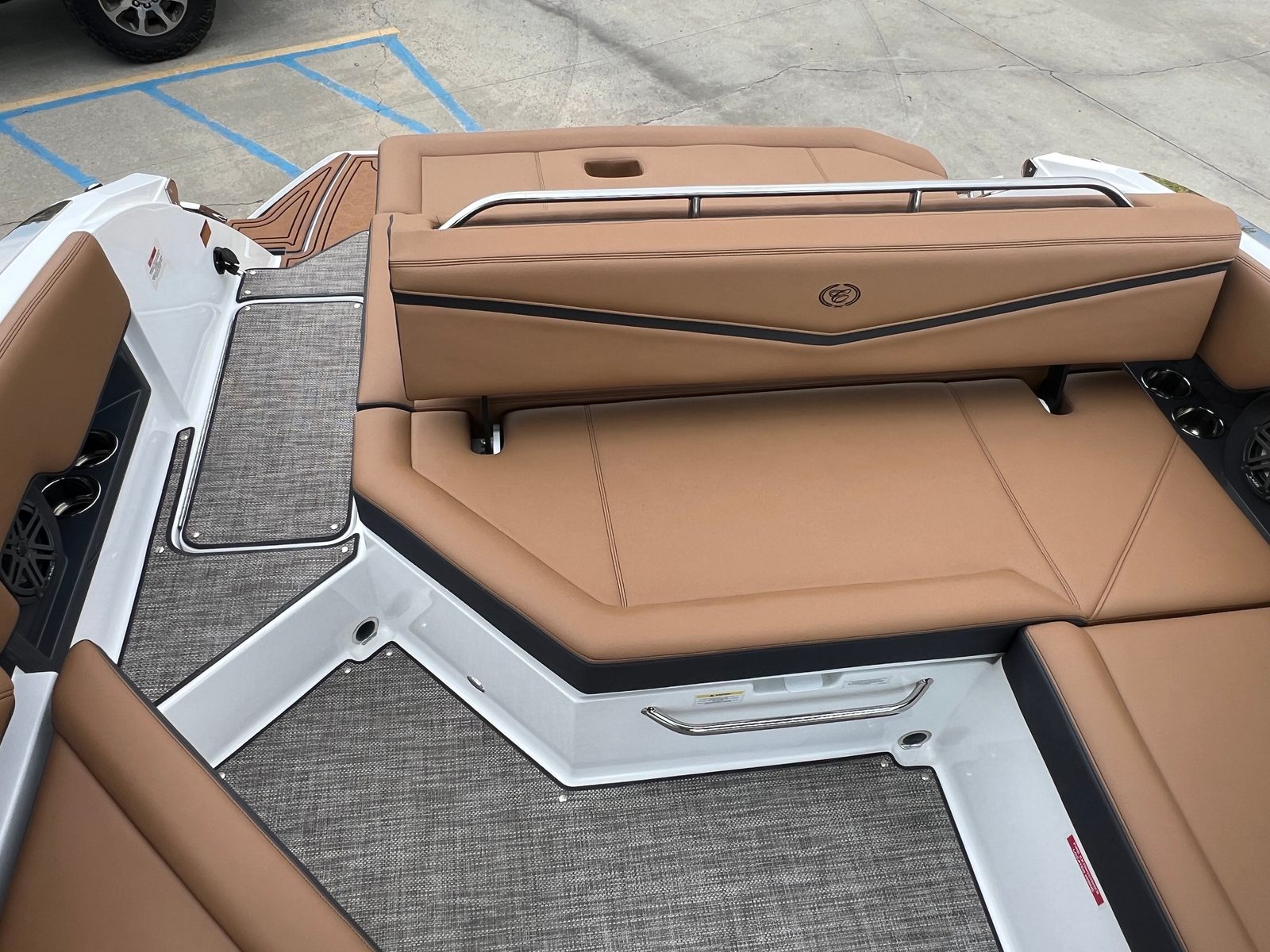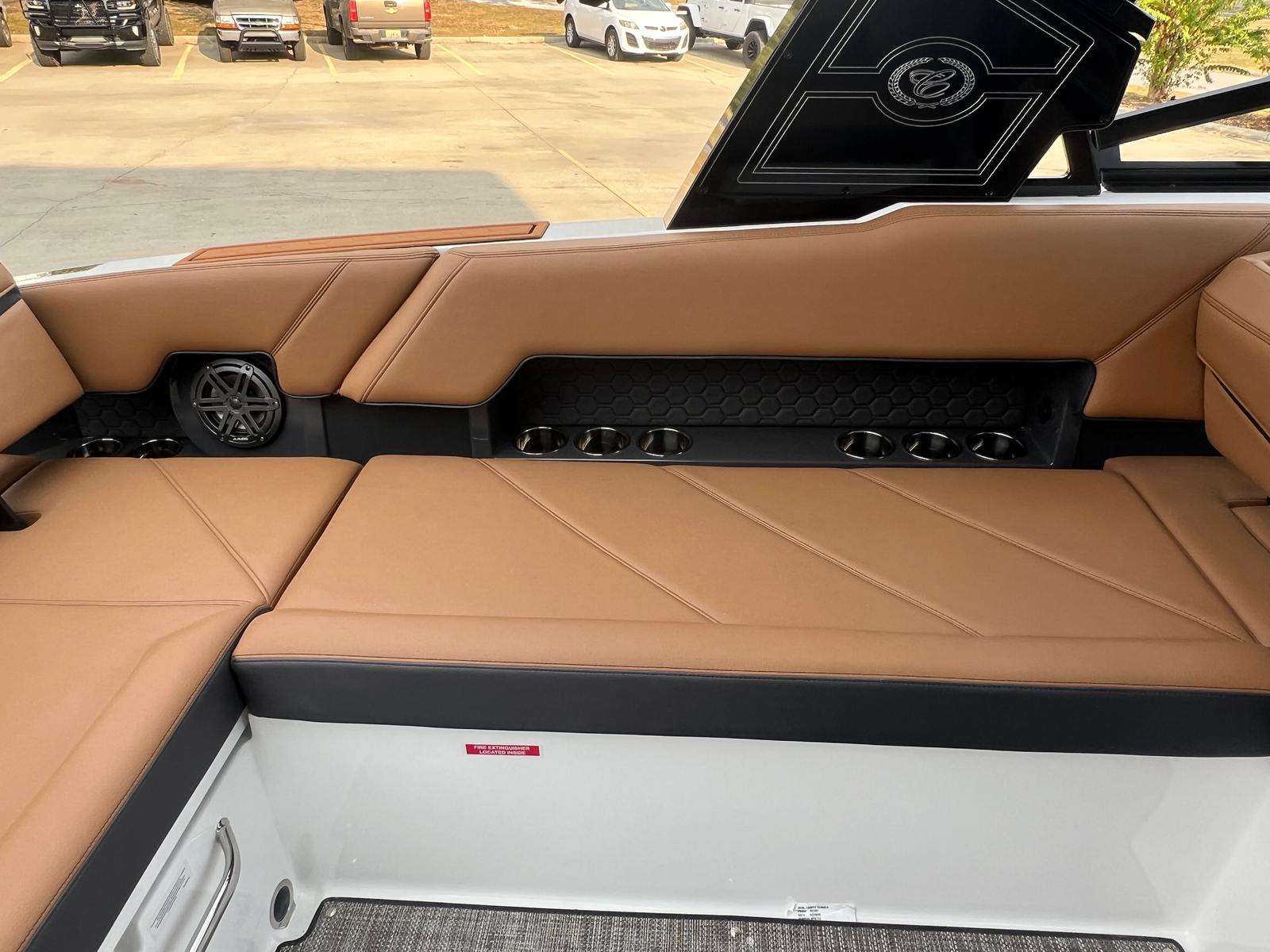 The 2026 Cobalt R8 Surf Bowrider is a true masterpiece, measuring an impressive 27 feet in length. This spacious vessel offers ample room for family, friends, and all your favorite water activities. The R8 Surf’s bold design is complemented by its striking Hull Bottom in Graphite Gray, accented by Cobalt Letters in Black Satin for a modern, sophisticated look. The interior features a luxurious combination of Caramel, Carbon, and Ebony, creating a welcoming and upscale atmosphere that sets the stage for memorable outings. As a new boat, the R8 Surf promises pristine condition and the latest advancements in marine engineering.