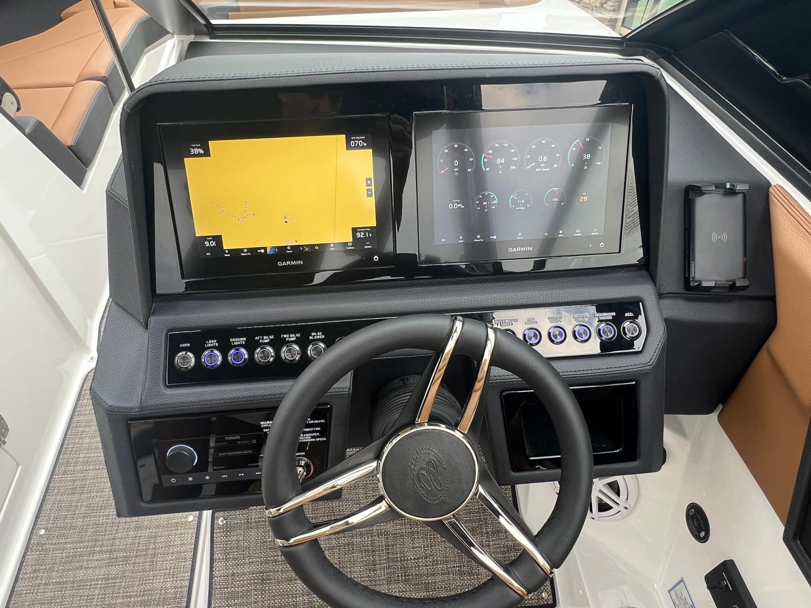 At the heart of the Cobalt R8 Surf is a powerful Volvo V8 430CE DP FWD engine, delivering an exhilarating 430 horsepower. This single-engine setup ensures smooth acceleration, impressive top speeds, and responsive handling, making every ride a thrill. Whether you’re carving through waves, cruising across the lake, or enjoying watersports, the R8 Surf’s advanced propulsion system guarantees a dynamic and enjoyable experience. The Dual Volvo 8610 glass cockpit provides intuitive control and real-time performance data, allowing you to navigate with confidence and precision.