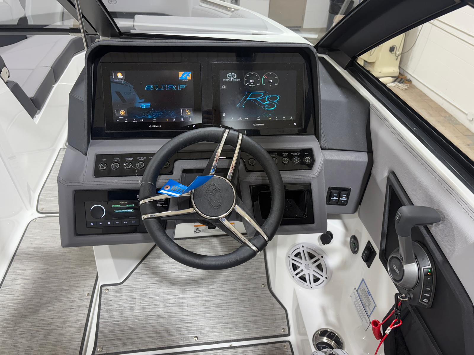 The 2026 Cobalt R8 Surf is a standout choice for anyone searching for a premium bowrider boat for sale. With its powerful Volvo V8 430CE DP engine, luxurious interior finishes, advanced glass cockpit with dual Volvo 8610 displays, and a host of premium features like stainless steel docking lights, seagrass floor covering, customizable LED accent lighting, and a premium sound system, this Cobalt boat for sale offers everything you need for memorable days on the water. Don’t miss your chance to own this exceptional new bowrider—contact the dealer today to learn more and start your next adventure with the Cobalt R8 Surf.