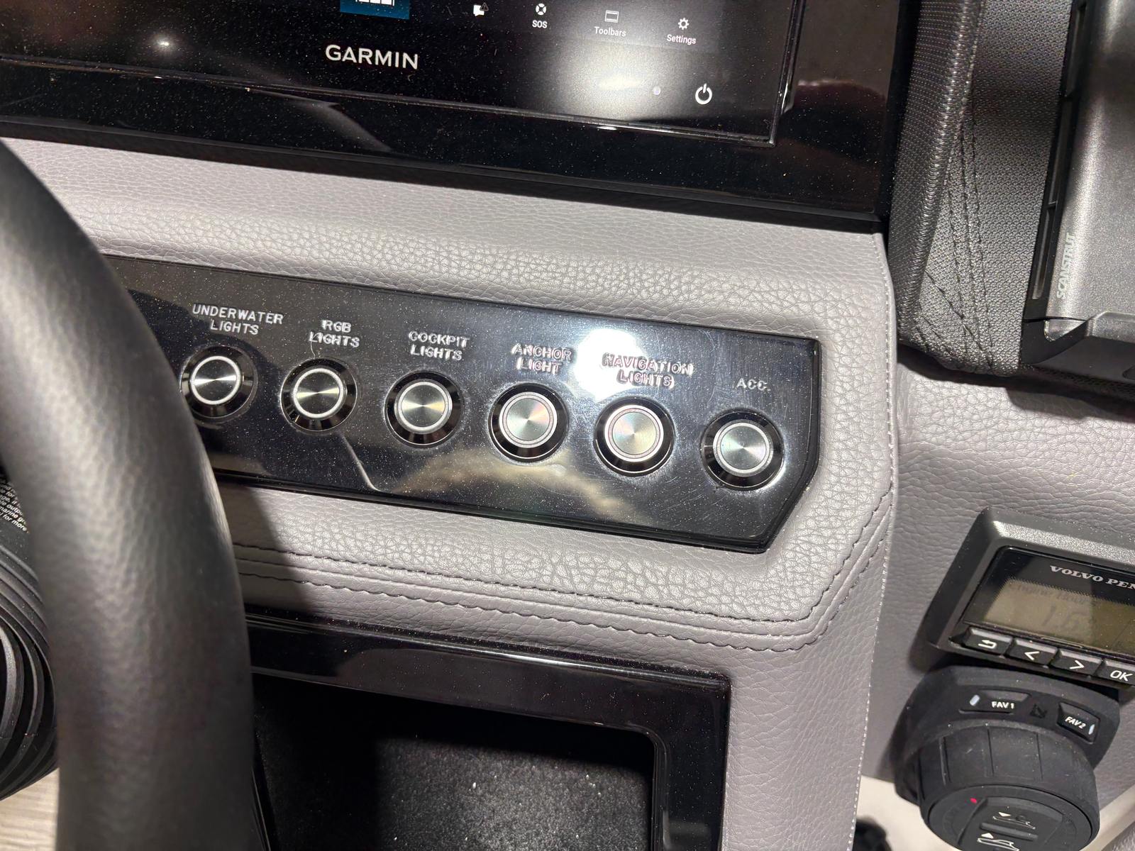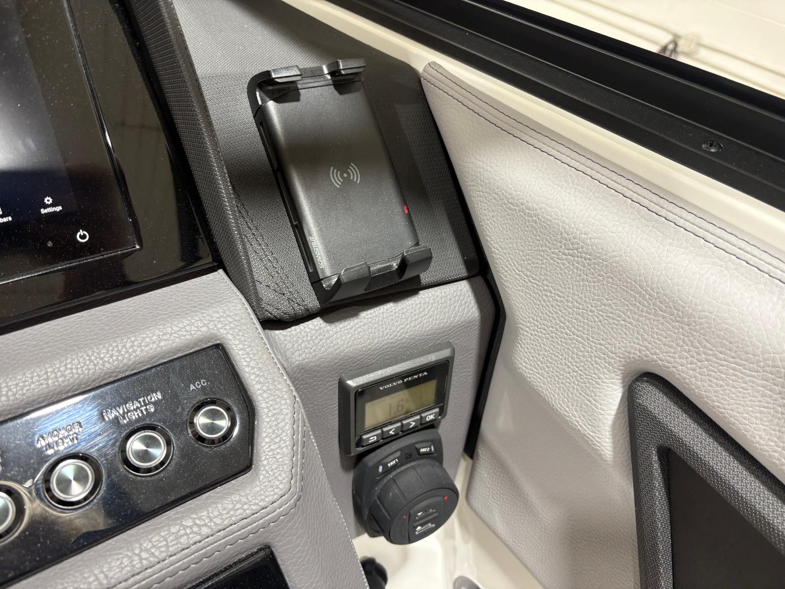 The Cobalt R8 is as practical as it is beautiful. Its generous length provides ample storage for all your gear, making it easy to bring along everything you need for a day on the water. The advanced docking lights and responsive handling make docking and maneuvering simple, even in crowded marinas or tight slips.Fuel efficiency is enhanced by the modern Volvo V8 engine, allowing you to spend more time enjoying the water and less time at the pump. The folding arch and bimini offer flexible shade options, so you can adapt to changing weather conditions with ease. Every aspect of the R8 is designed to make ownership straightforward and enjoyable, from easy-to-clean surfaces to intuitive controls.