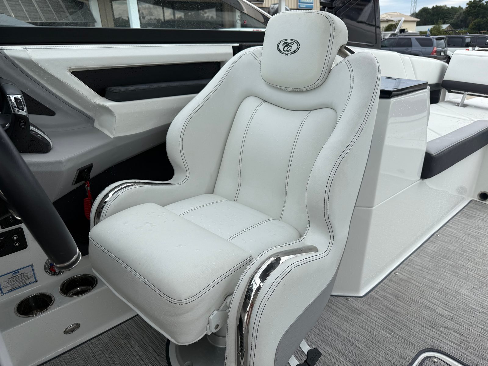 Under the hood, the Cobalt R8 is powered by twin engines, delivering a combined 600 horsepower. This robust setup ensures exhilarating acceleration, smooth cruising, and the power needed for a variety of water sports. Whether you are towing skiers, racing across the lake, or enjoying a leisurely cruise, the R8’s performance capabilities make every outing memorable. The dual-engine configuration also enhances maneuverability and control, providing confidence whether you are docking in tight spaces or navigating open waters.