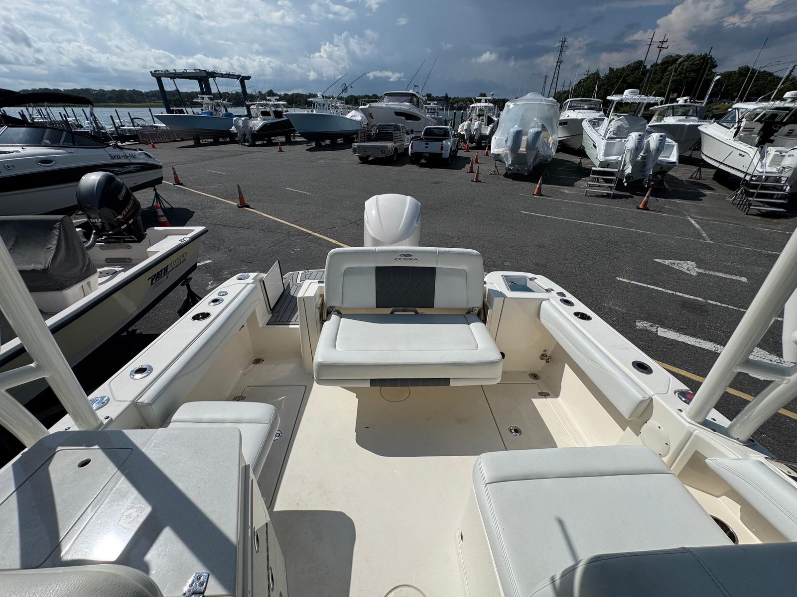 Practicality is at the core of the Cobia 240 DC’s design. The generous storage compartments make it easy to stow away gear, coolers, and water toys, keeping the deck tidy and safe. The boat’s manageable size and responsive handling simplify docking and maneuvering, even in crowded marinas or tight spaces. The efficient engine not only provides impressive performance but also helps keep operating costs in check, making this Cobia boat for sale a smart investment for boaters who value both fun and practicality.The dual console layout also offers added protection from wind and spray, allowing you to extend your boating season and enjoy the water in a variety of weather conditions. The durable construction and quality craftsmanship ensure that your investment will stand the test of time, providing years of enjoyment and adventure.