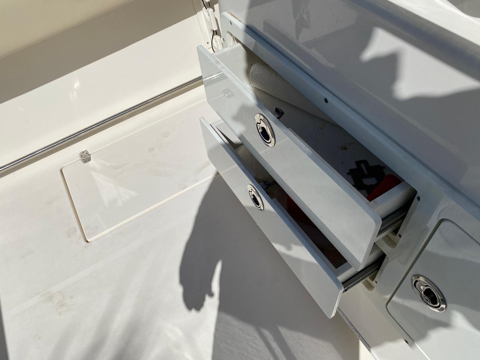 Powering the Cobia 277 CC are two robust engines, each contributing to a total of 400 horsepower. With 685 engine hours, these motors have proven their reliability and are primed for many more adventures. The dual-engine setup not only enhances speed and acceleration but also provides superior handling and maneuverability, especially in challenging conditions. Whether you’re cruising along the coastline, heading offshore for a fishing expedition, or enjoying a leisurely day on the lake, this Center Console boat for sale offers impressive performance and responsive control.