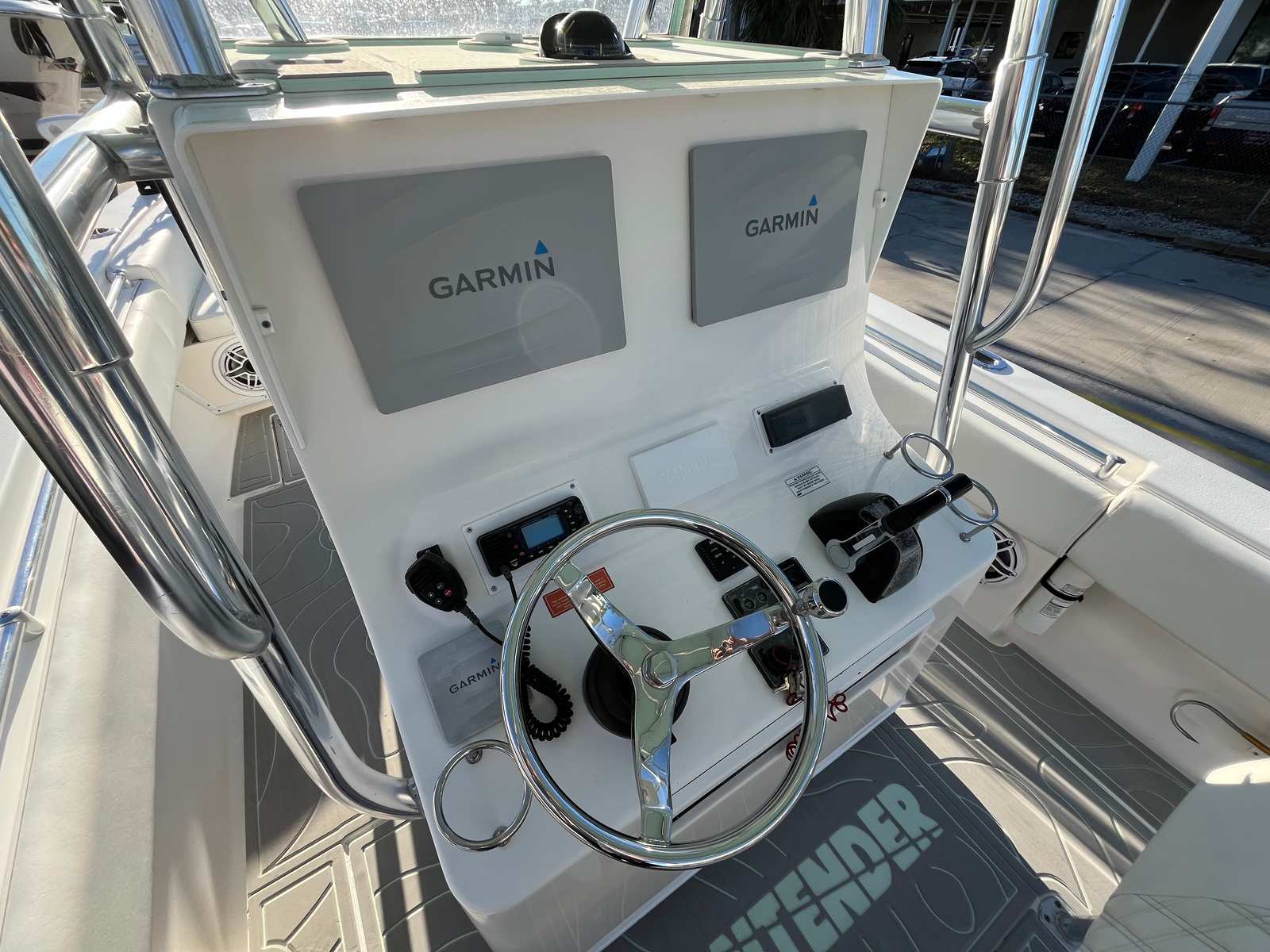 At the heart of this Contender 28 Sport are two robust engines, delivering a combined 600 horsepower. With only 1,755 engine hours, these twin engines provide reliable power and efficiency, ensuring you reach your destination swiftly and confidently. The center console configuration allows for optimal weight distribution and balance, enhancing stability and maneuverability even at higher speeds. Whether you’re cruising along the coastline, heading offshore for a fishing expedition, or simply enjoying a leisurely ride, the performance capabilities of this Contender boat for sale are sure to impress. The responsive handling and acceleration make it easy to navigate tight turns, choppy waters, and busy marinas, giving you complete control over your boating experience.