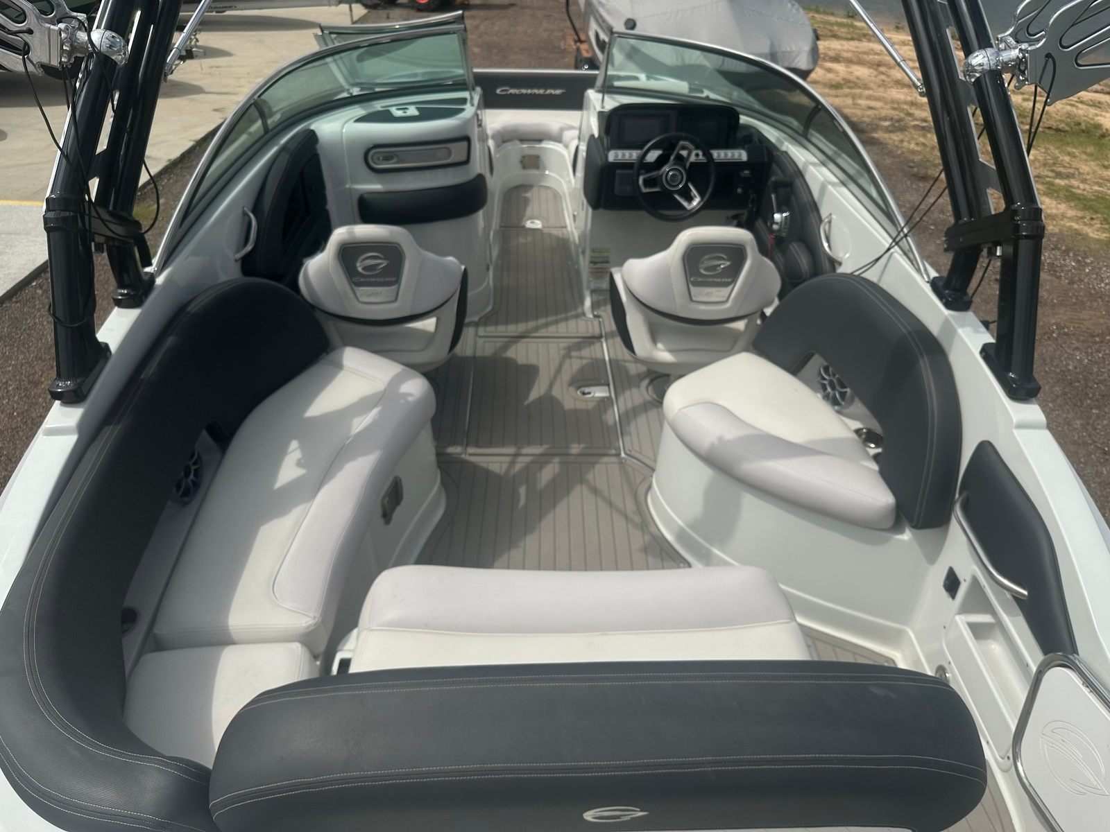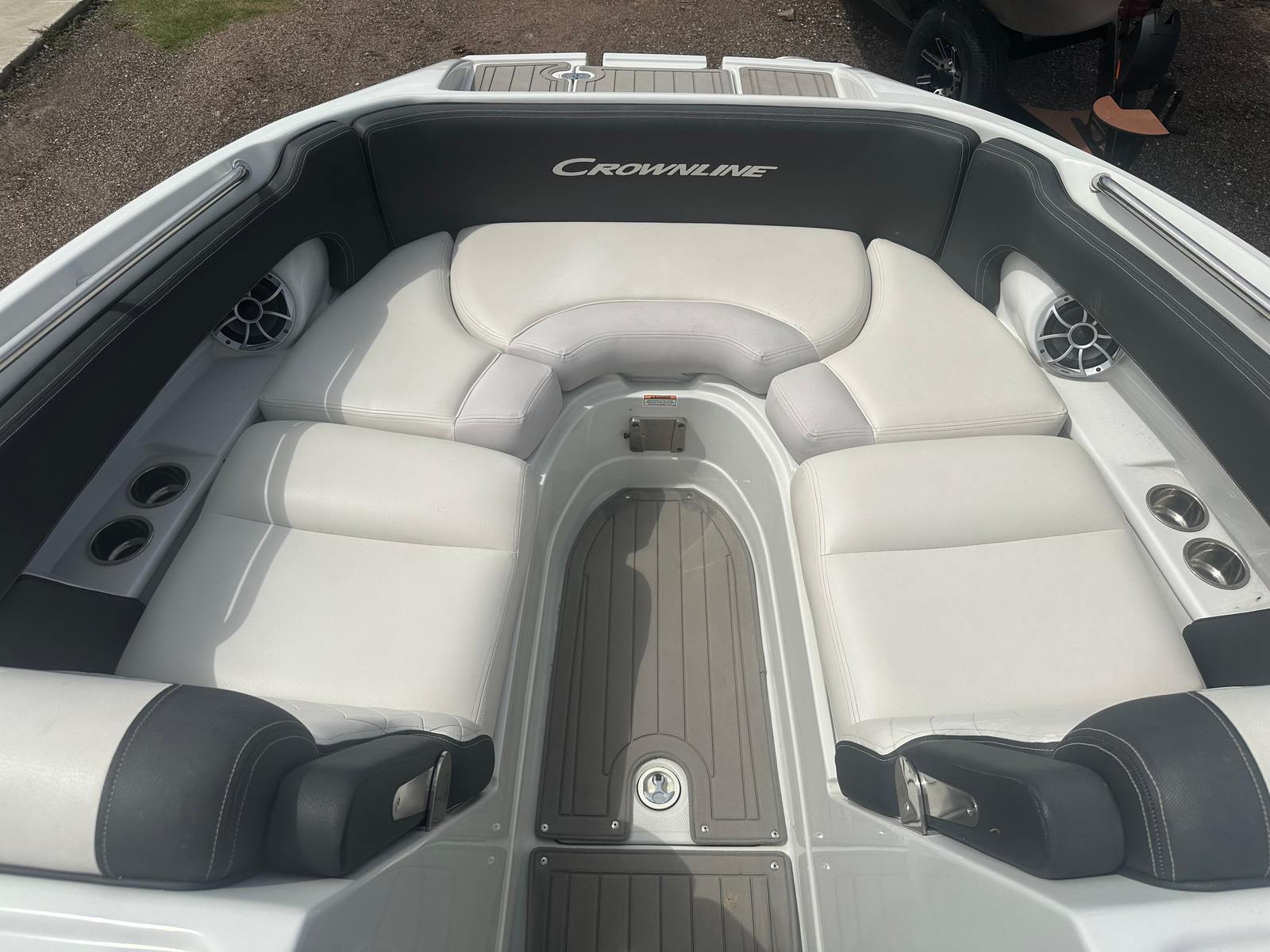 Practicality is at the heart of the Crownline E255 Surf’s design. The spacious deck and smart storage solutions make it easy to keep your gear organized and accessible. Docking is a breeze thanks to the boat’s responsive handling and manageable size, while the efficient engine helps keep fuel costs in check. Whether you’re heading out for a quick afternoon escape or a full day of adventure, this Bowrider is designed to make every outing hassle-free and enjoyable.The E255 Surf’s user-friendly features ensure that both seasoned boaters and newcomers can operate it with confidence. The intuitive controls and clear instrumentation make navigation straightforward, while the comfortable seating and open layout provide a welcoming environment for all passengers. With its blend of performance and practicality, this Crownline boat for sale is an excellent choice for families, couples, and groups of friends.