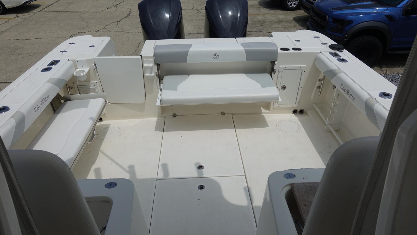 Practicality is a hallmark of the Edgewater 335 EX. The center console layout not only enhances visibility and maneuverability but also makes docking and storage more convenient. The boat’s manageable size allows for easy trailering and launching, while the efficient twin engines help optimize fuel consumption for longer trips and more time on the water. Storage compartments are thoughtfully integrated throughout the boat, providing ample space for gear, safety equipment, and personal belongings.The Edgewater 335 EX is designed to simplify every aspect of boat ownership. From its easy-to-clean surfaces to its intuitive controls, this boat minimizes maintenance and maximizes enjoyment. The robust construction ensures that it can withstand the rigors of saltwater and frequent use, giving you peace of mind as you explore new horizons.