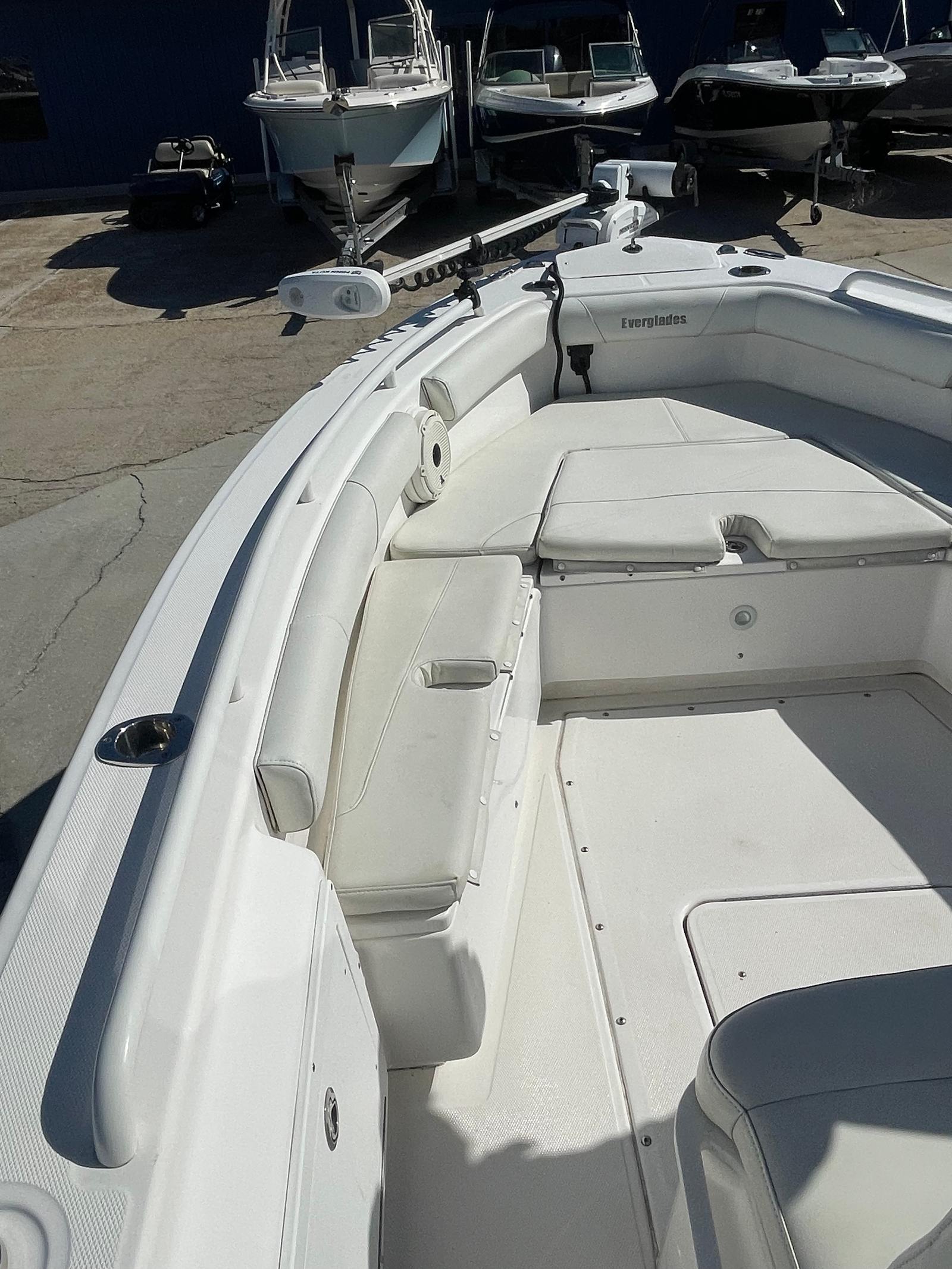 Practicality is at the heart of the Everglades 243 CC’s design. The boat’s ample storage compartments make it easy to stow fishing gear, water toys, and personal items, keeping the deck clutter-free and organized. The center console configuration allows for easy docking and maneuvering, even in tight spaces, making it a breeze to visit marinas, waterfront restaurants, or secluded coves. The efficient engine ensures you can enjoy longer trips without frequent refueling stops, while the sturdy construction provides peace of mind in varying weather conditions. Whether you’re planning a weekend getaway or a quick afternoon escape, this Everglades boat for sale offers the convenience and reliability you need for stress-free boating.