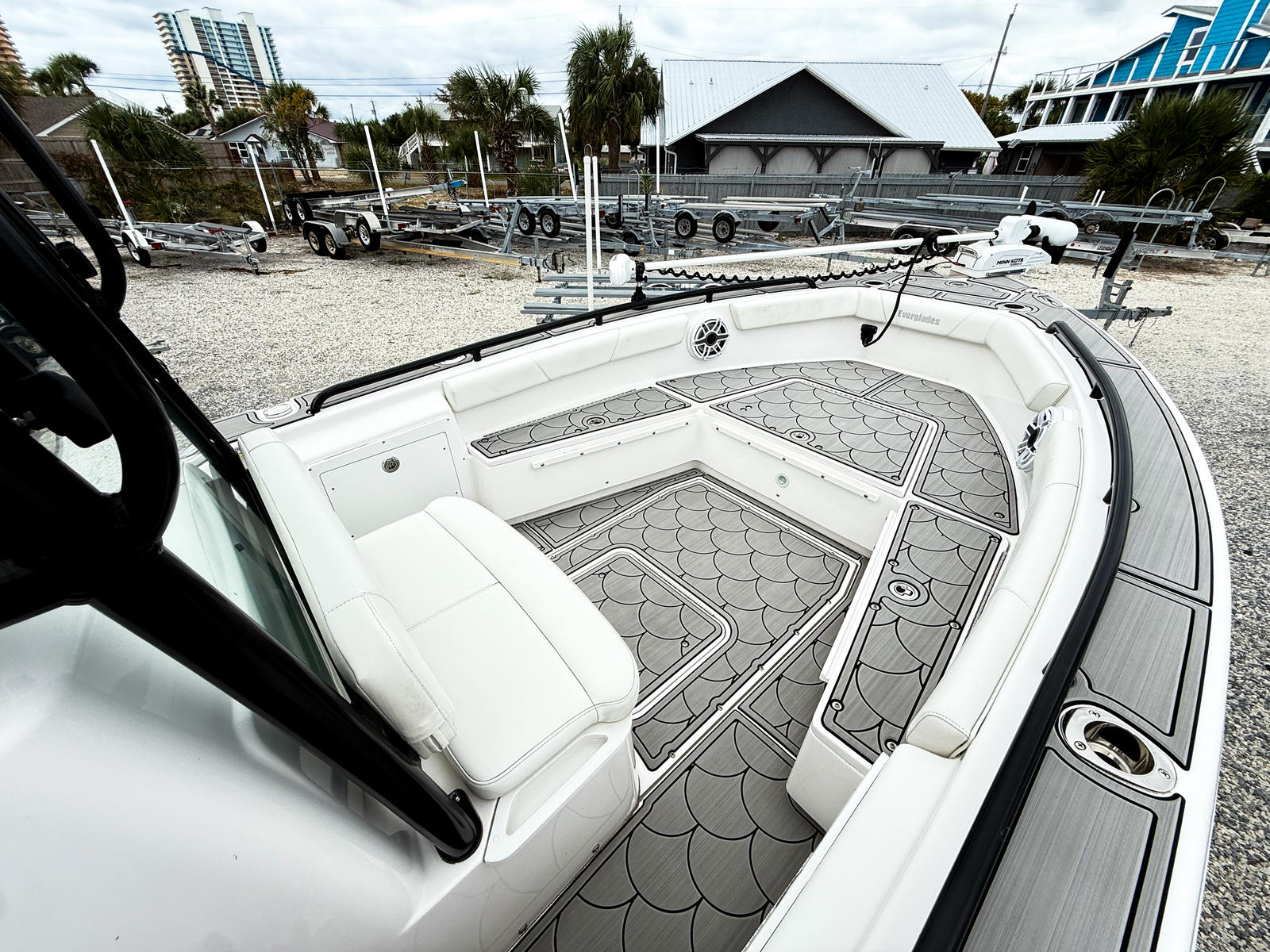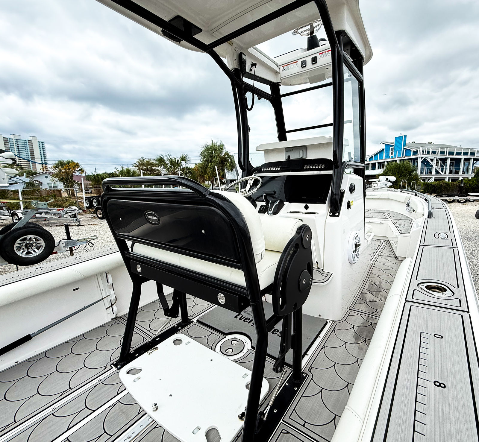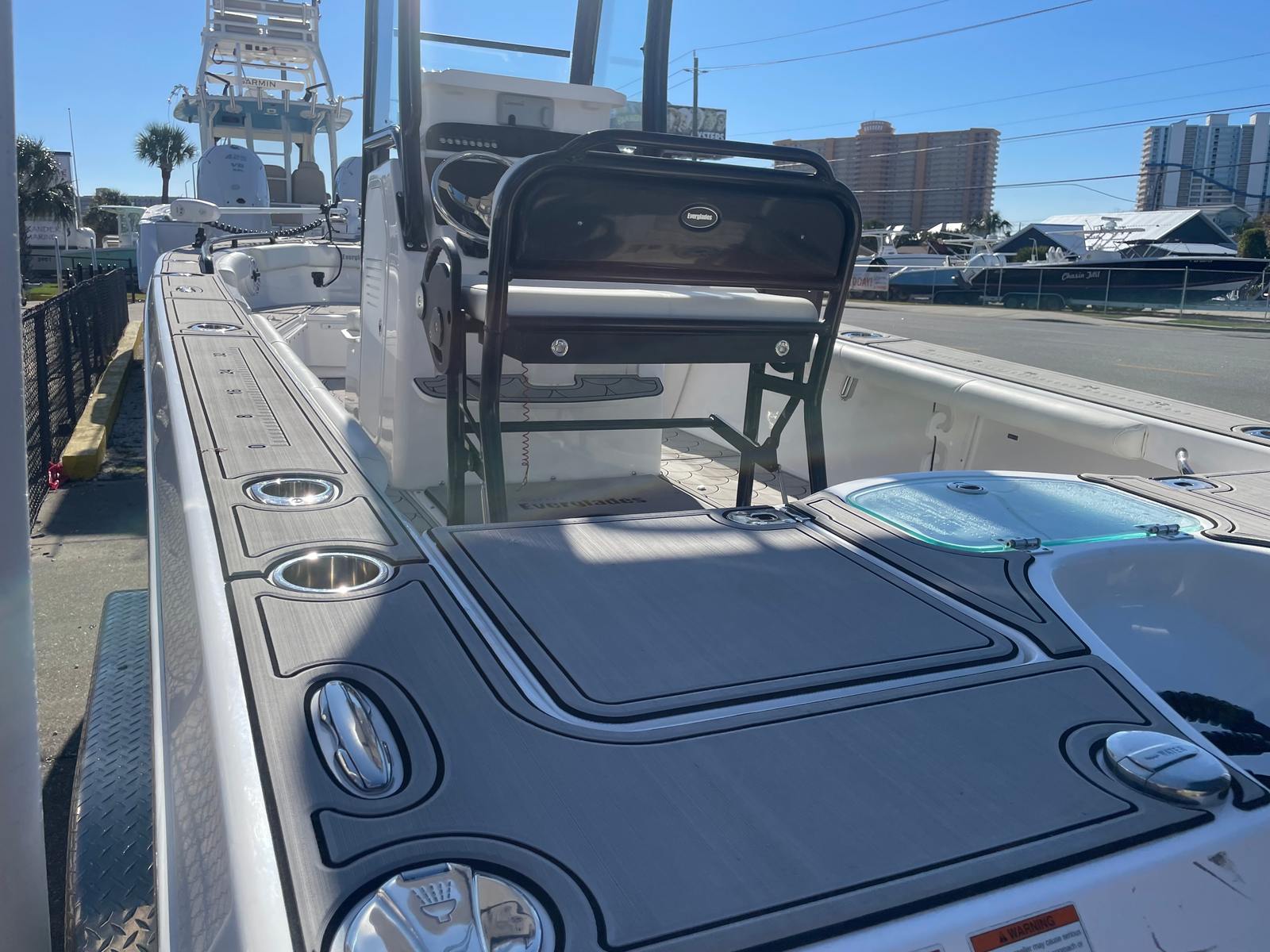 Practicality is at the heart of the Everglades 243 CC. The boat’s ample storage compartments make it easy to stow away fishing gear, water sports equipment, and personal belongings, keeping everything within reach yet out of the way. The center console layout enhances visibility and maneuverability, making docking and trailering straightforward, even for less experienced boaters.Fuel efficiency is another key advantage, allowing you to cover more water without frequent stops at the pump. The boat’s manageable size makes it suitable for a variety of docking situations, from marina slips to private docks, and its sturdy construction ensures longevity and low maintenance requirements.