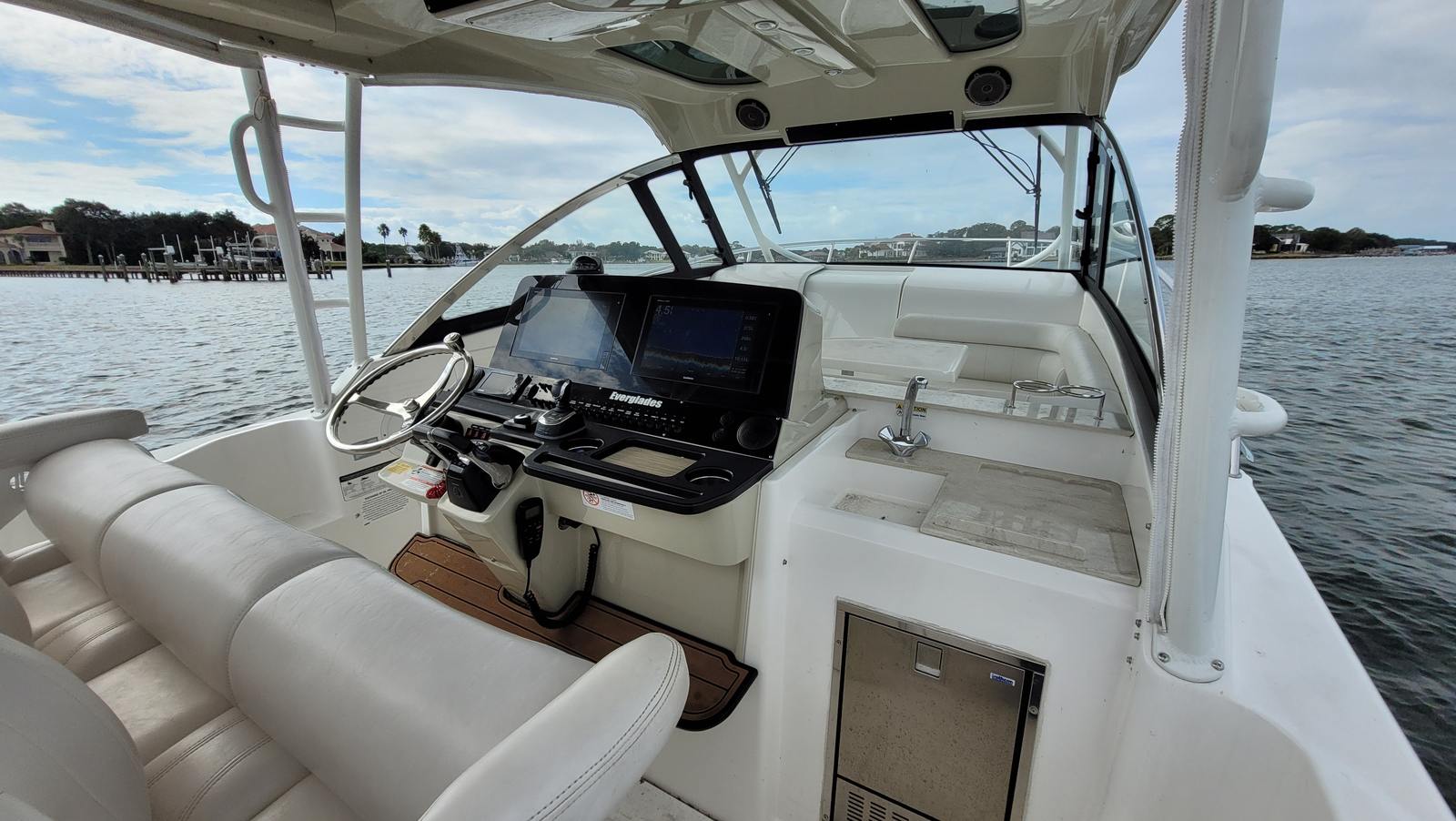 The Everglades 360 LXC is packed with features that enhance both functionality and comfort. Its 36-foot length provides ample space for entertaining, relaxing, and enjoying the water with friends and family. The walkaround design allows for easy movement around the deck, making it ideal for fishing, sunbathing, or simply taking in the views from every angle. The spacious cockpit and well-appointed helm station are designed with the captain in mind, offering intuitive controls and excellent visibility for safe and enjoyable navigation.This model is renowned for its innovative layout, which maximizes both indoor and outdoor living spaces. The cabin offers a retreat from the elements, with comfortable seating and thoughtful storage solutions for all your gear. The deck is designed for versatility, whether you are casting lines, hosting a sunset dinner, or lounging in the sun. Every detail of the Everglades 360 LXC is crafted to enhance your time on the water, making it a standout choice among walkaround boats for sale.