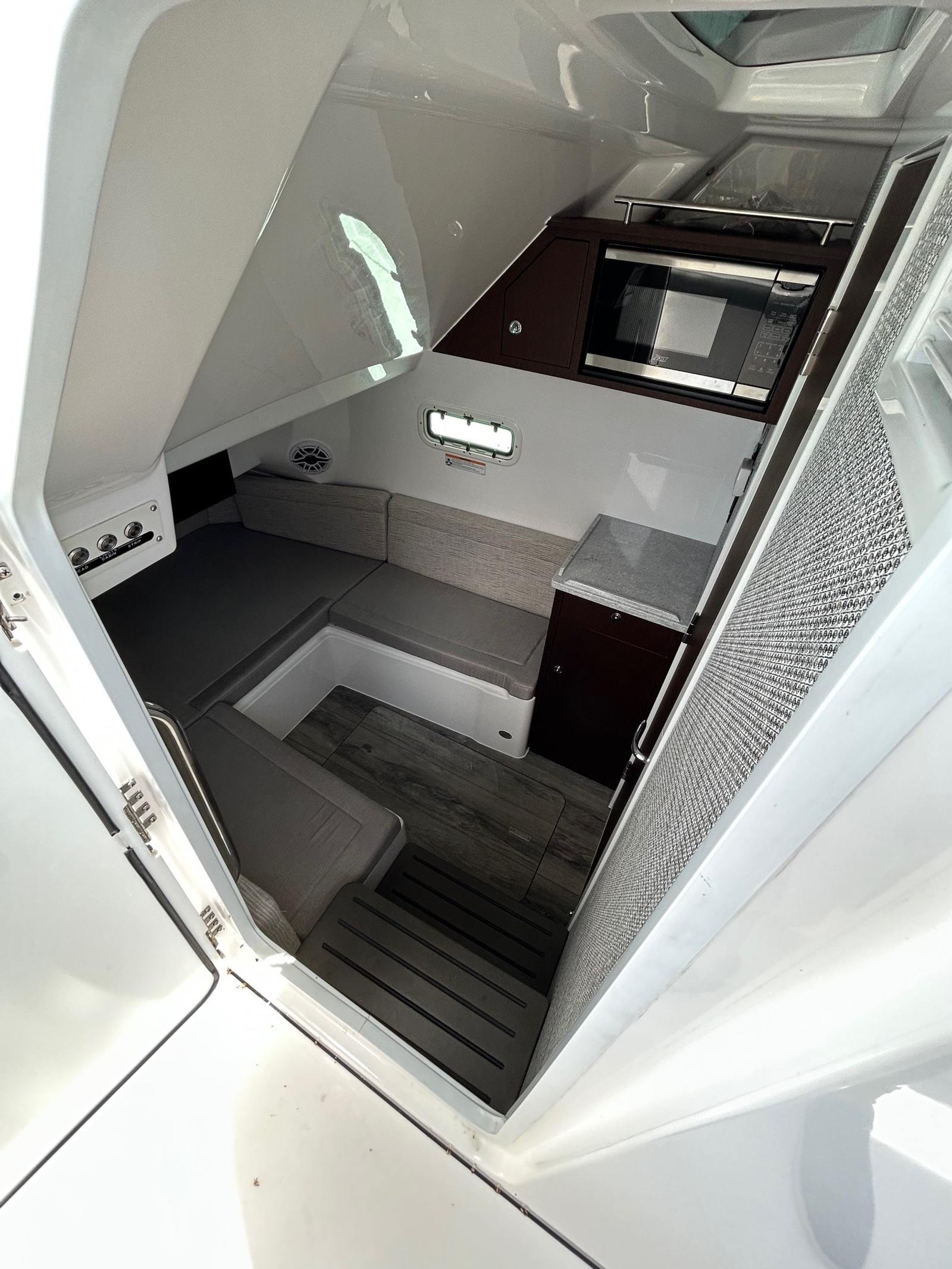 The Everglades 395 CC is as practical as it is luxurious. Its generous storage options make it easy to stow gear, supplies, and personal items, keeping the deck clutter-free and organized. The freezer package ensures your provisions are always fresh, while the electric grill and storage drawer add convenience for onboard dining. Fender pins simplify the docking process, making it easy to secure the boat at marinas or docks. Fuel efficiency is enhanced by the advanced engine technology, allowing you to cover more distance without frequent refueling stops. The upper station provides excellent visibility for navigation and fishing, while the canvas package offers protection from sun and rain, extending your boating season and enhancing comfort in all weather conditions.