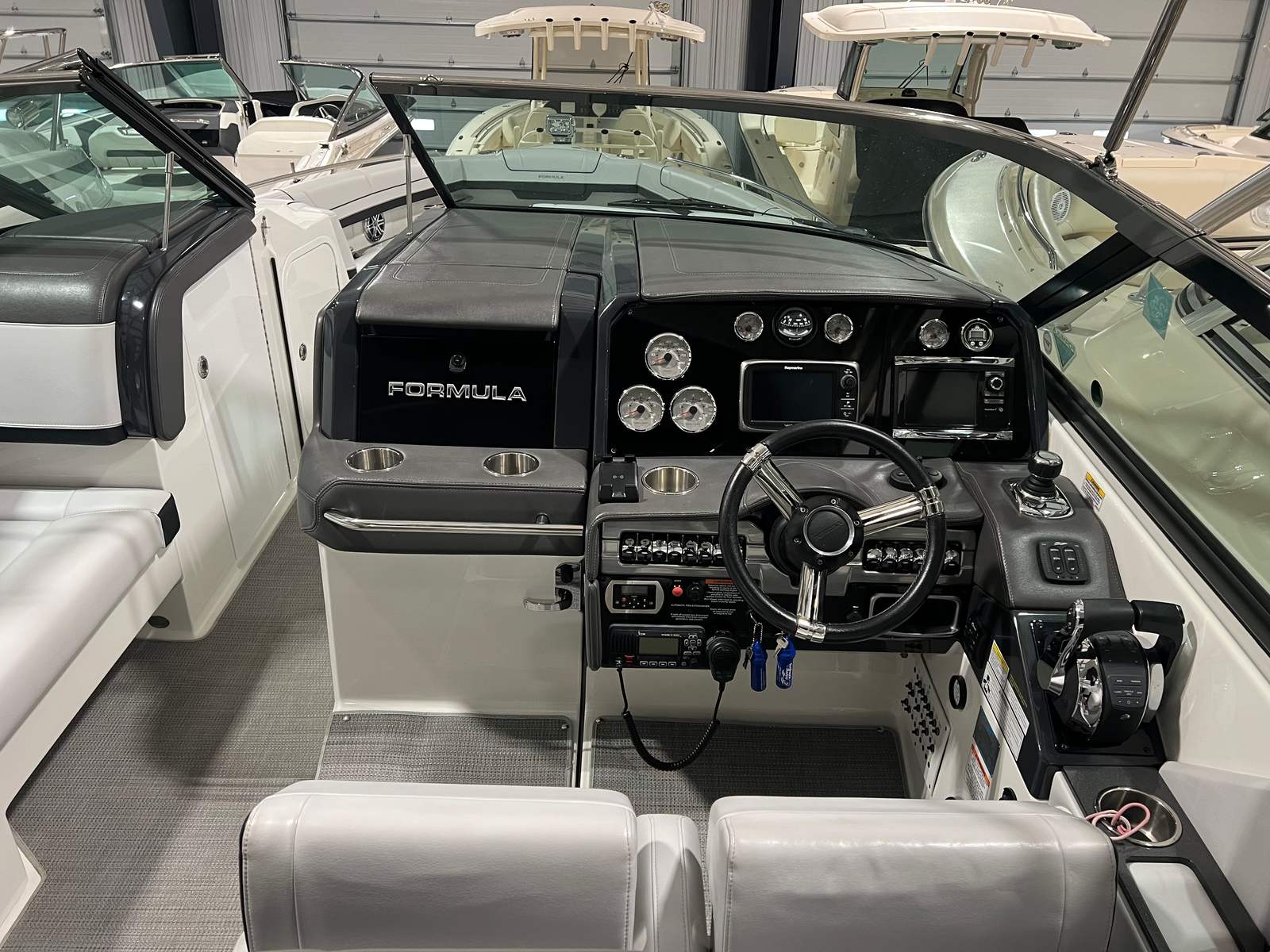 The Formula 330 CBR is designed with practicality in mind, making ownership both enjoyable and convenient. The battery charger keeps your systems running smoothly, while the bottom paint reduces maintenance requirements and helps preserve the boat’s sleek appearance. The bow and cockpit covers offer protection from the elements, ensuring your investment stays in top condition year after year. Docking and storage are made easier thanks to the boat’s manageable 33-foot length, allowing you to access a variety of marinas and slips with confidence. The twin engines provide excellent maneuverability, making docking and navigating tight spaces a stress-free experience. Fuel efficiency is enhanced by Formula’s advanced engineering, so you can spend more time on the water and less time at the pump.