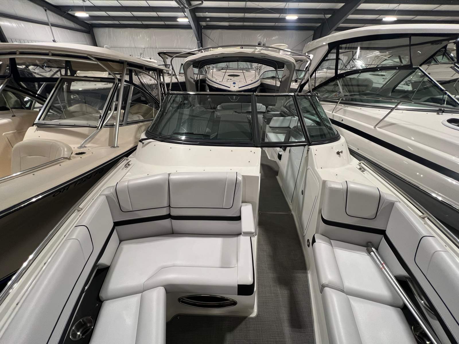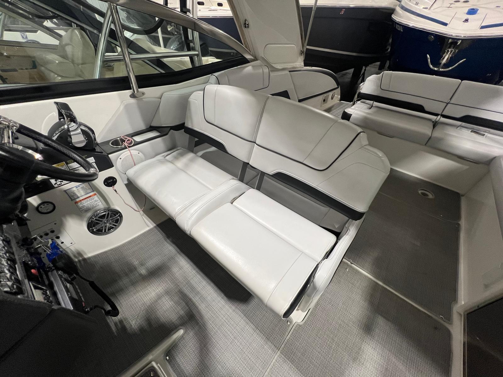 Owning the Formula 330 CBR cruiser means embracing a lifestyle of fun, relaxation, and adventure. The spacious layout is perfect for entertaining friends and family, offering ample seating and room to move about. The comfortable cabin and climate control features ensure everyone stays cozy, whether you’re escaping the summer heat or enjoying a crisp autumn evening on the water. The premium sea grass flooring in the cockpit adds both style and practicality, making cleanup after a day of fun effortless. Socializing is a breeze on this cruiser boat for sale, with plenty of space for dining, lounging, and enjoying the company of loved ones. The bimini top and camper enclosure provide flexible options for sun and shade, so you can tailor your experience to suit the weather and your preferences. Whether you’re hosting a sunset cocktail party or embarking on a weekend adventure, the Formula 330 CBR delivers the perfect setting for memorable moments.