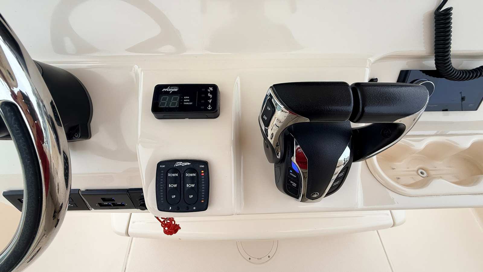 • Twin Yamaha F300 DEC (Digital Electronic Controls): Upgraded gray engines with just 499 confirmed hours. Always serviced annually by certified Yamaha technicians at Quality Boats.