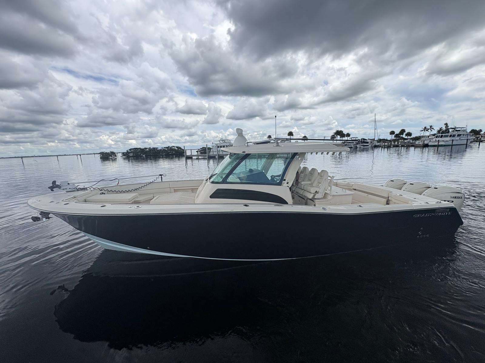 The Grady-White Canyon 386 is designed with practicality in mind, making ownership both enjoyable and convenient. The Center Console layout provides generous storage options for gear, supplies, and personal items, keeping the deck clutter-free and organized. The boat’s size and triple-engine setup make docking straightforward, while the efficient engines help optimize fuel consumption for longer journeys. Maintenance is simplified thanks to Grady-White’s reputation for reliability and thoughtful engineering. Whether you are planning a weekend getaway, a day of fishing, or a sunset cruise, the Canyon 386 adapts to your needs with ease.
