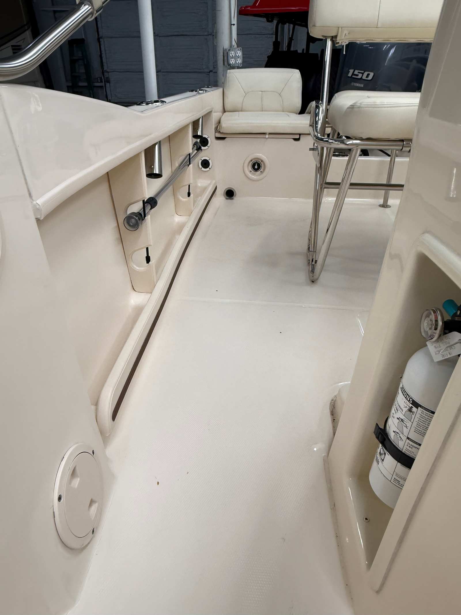The Fisherman 180 is designed with practicality in mind, making boat ownership more enjoyable and less stressful. Its manageable size allows for easy docking and storage, whether you keep it at a marina or trailer it to your favorite launch site. The efficient 150-horsepower engine offers a great balance of power and fuel economy, so you can spend more time on the water and less time at the pump. The Center Console layout also provides plenty of storage options for gear, tackle, and personal items, keeping the deck clutter-free and organized.