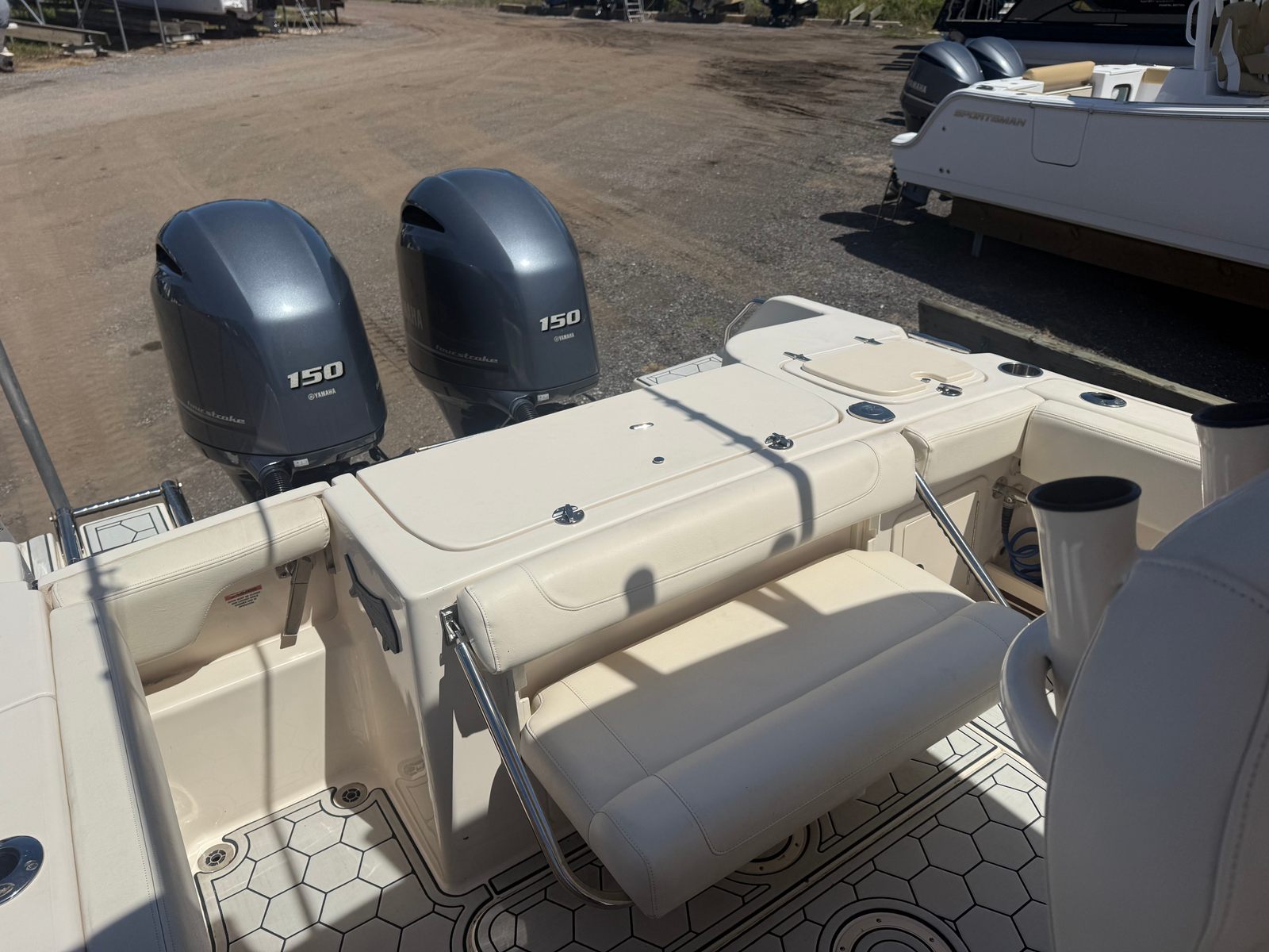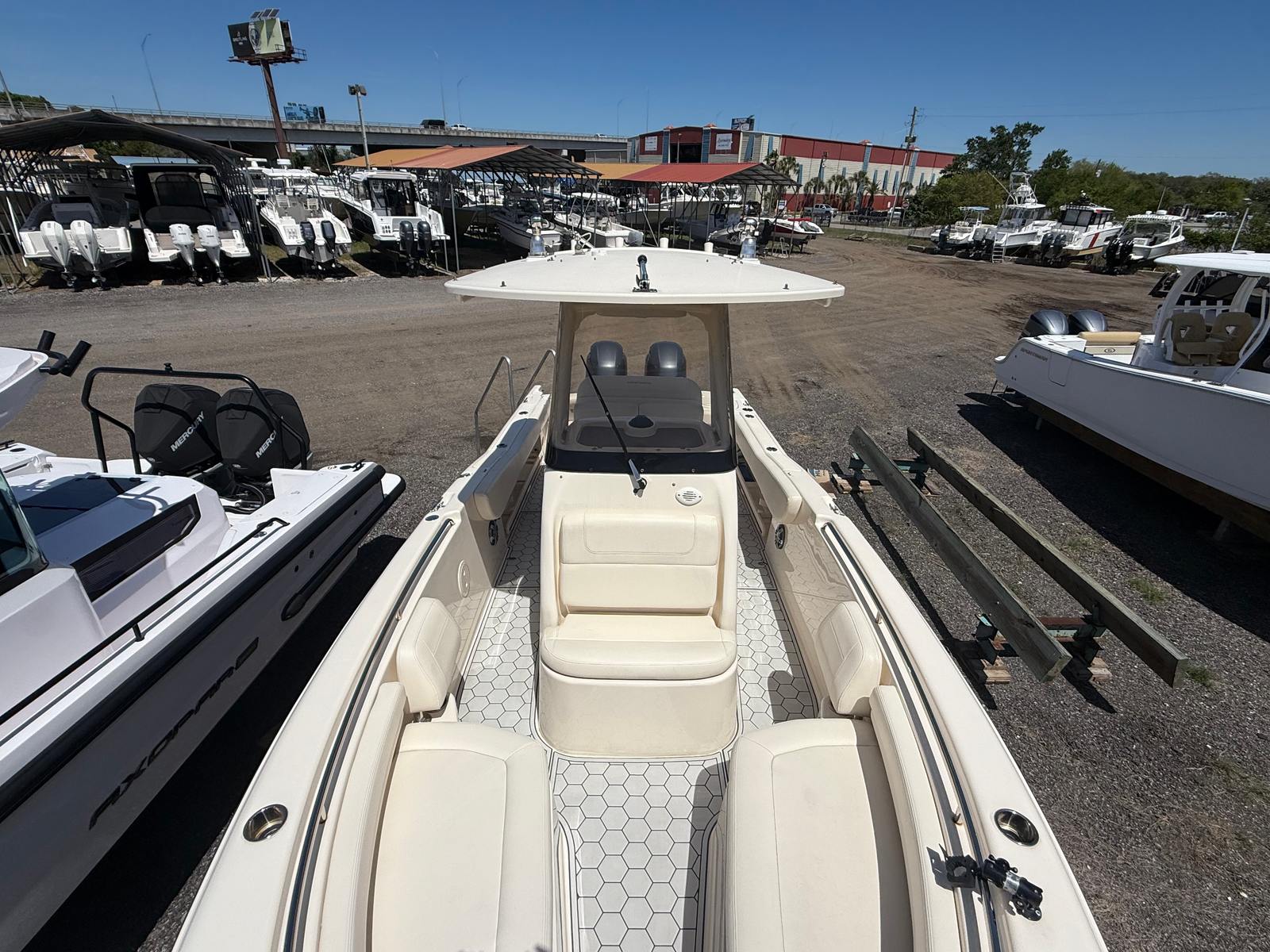 This center console boat for sale is designed with practicality in mind. The Fisherman 257’s layout maximizes usable space, offering plenty of storage for gear, tackle, and personal items. The center console design makes docking and maneuvering a breeze, even for less experienced captains. Its manageable 25-foot length means you can easily trailer the boat to your favorite launch sites or store it when not in use.Fuel efficiency is another highlight, thanks to the modern twin-engine setup that delivers power without sacrificing economy. Whether you’re planning a long day offshore or a quick trip to a nearby island, you’ll appreciate the balance of performance and efficiency that this Grady-White boat provides. Maintenance is straightforward, and the boat’s durable construction ensures it will remain a reliable companion for years to come.