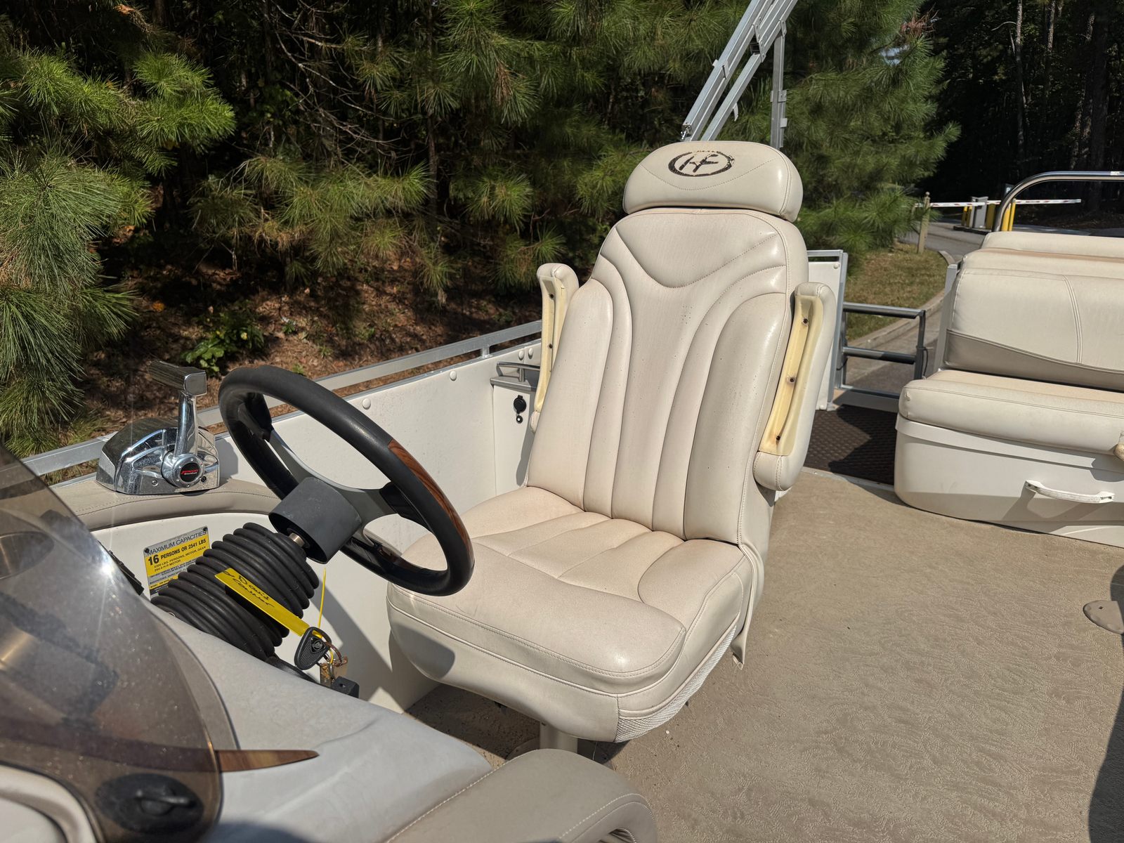 Step aboard the 2007 Harris Royal Heritage 250 and experience the perfect balance of style and functionality. Measuring 25 feet in length, this used pontoon boat offers ample space for entertaining, lounging, and enjoying the open water. The Royal Heritage 250’s design reflects Harris’s commitment to quality, with a layout that maximizes comfort and usability. Whether you’re planning a leisurely cruise, a lively gathering, or a peaceful escape, this pontoon boat is ready to accommodate your every need.