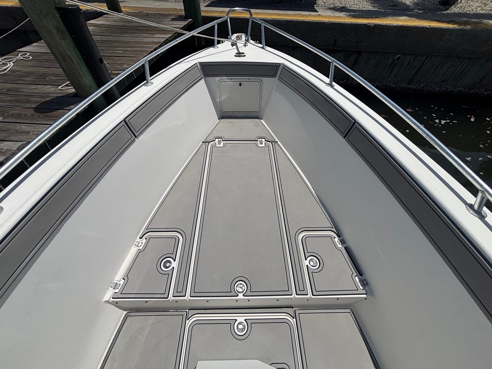 Powering the Jefferson Marlago FS31 are two engines, delivering a combined 400 horsepower. With only 150 engine hours, these motors have plenty of life left, ensuring you can enjoy countless adventures without worry. The dual-engine setup provides excellent acceleration, responsive handling, and the ability to tackle a variety of water conditions with confidence. Whether you’re cruising along the coastline, heading out for a day of fishing, or exploring new destinations, the Marlago FS31’s performance capabilities make every outing smooth and enjoyable. The center console design further enhances visibility and control, allowing you to maneuver with ease and precision.