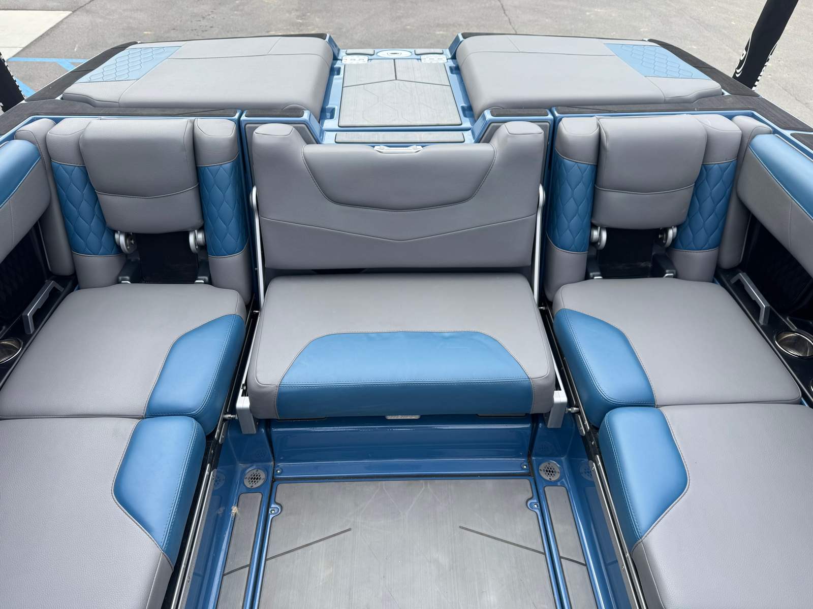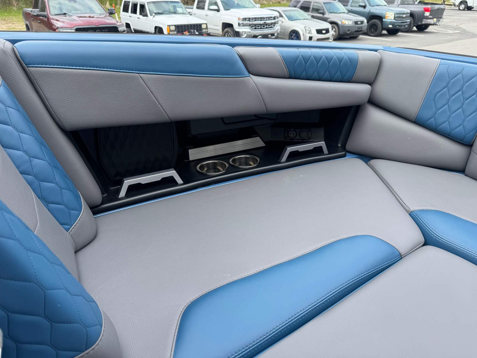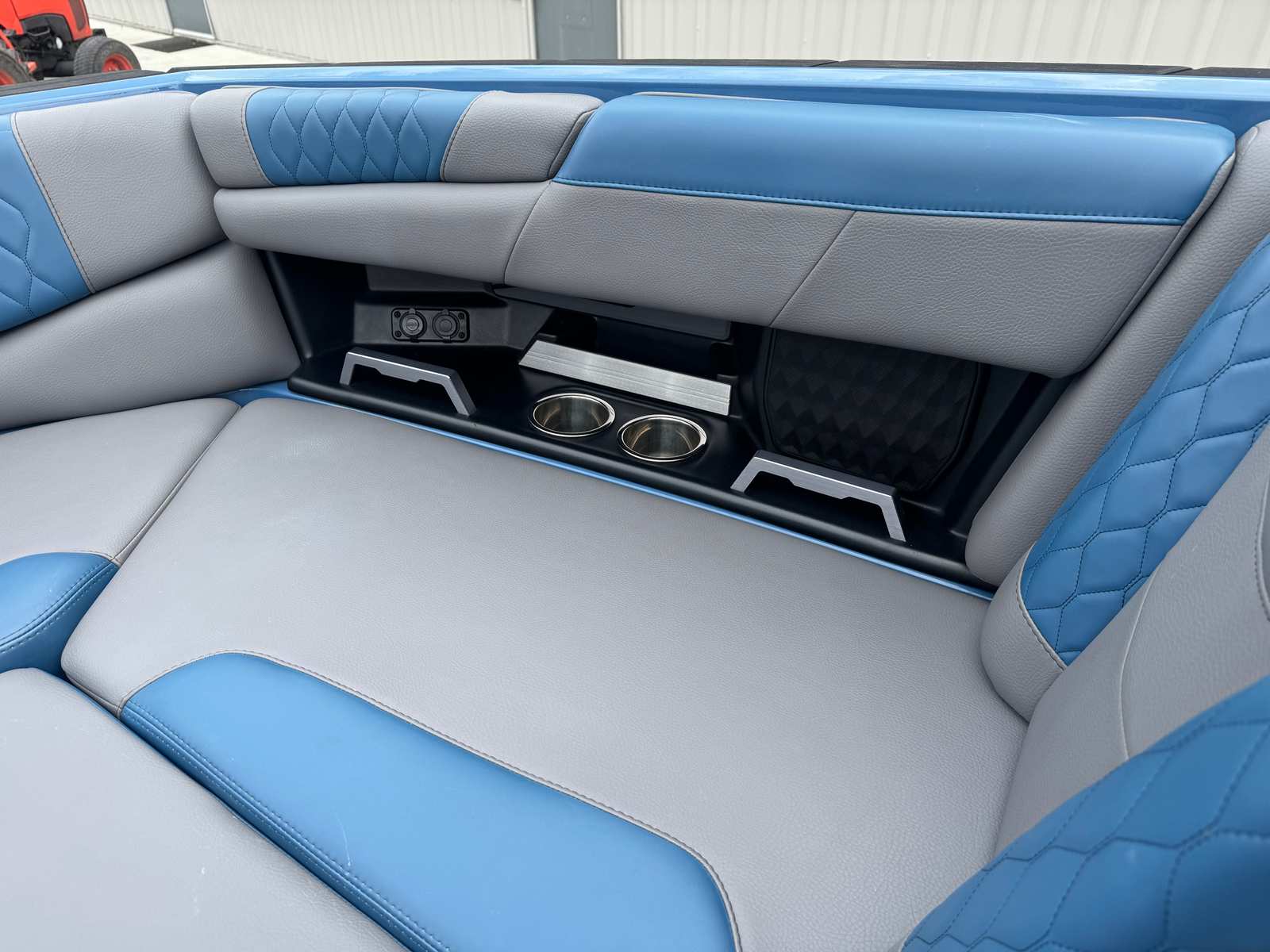 The Malibu M-Series M220 is engineered with features that cater to both serious athletes and those seeking leisurely days on the lake. Its spacious 22.42-foot layout provides ample room for friends and family, making it ideal for social gatherings and group outings. The boat’s hull design is optimized for creating the perfect wake, ensuring that every ride is smooth and enjoyable, whether you’re wakeboarding, waterskiing, or simply cruising.The M220’s advanced construction and attention to detail are evident throughout, from its ergonomic seating arrangements to its intuitive helm controls. Every aspect of this Malibu boat for sale is designed to enhance your time on the water, offering comfort, convenience, and style in equal measure.