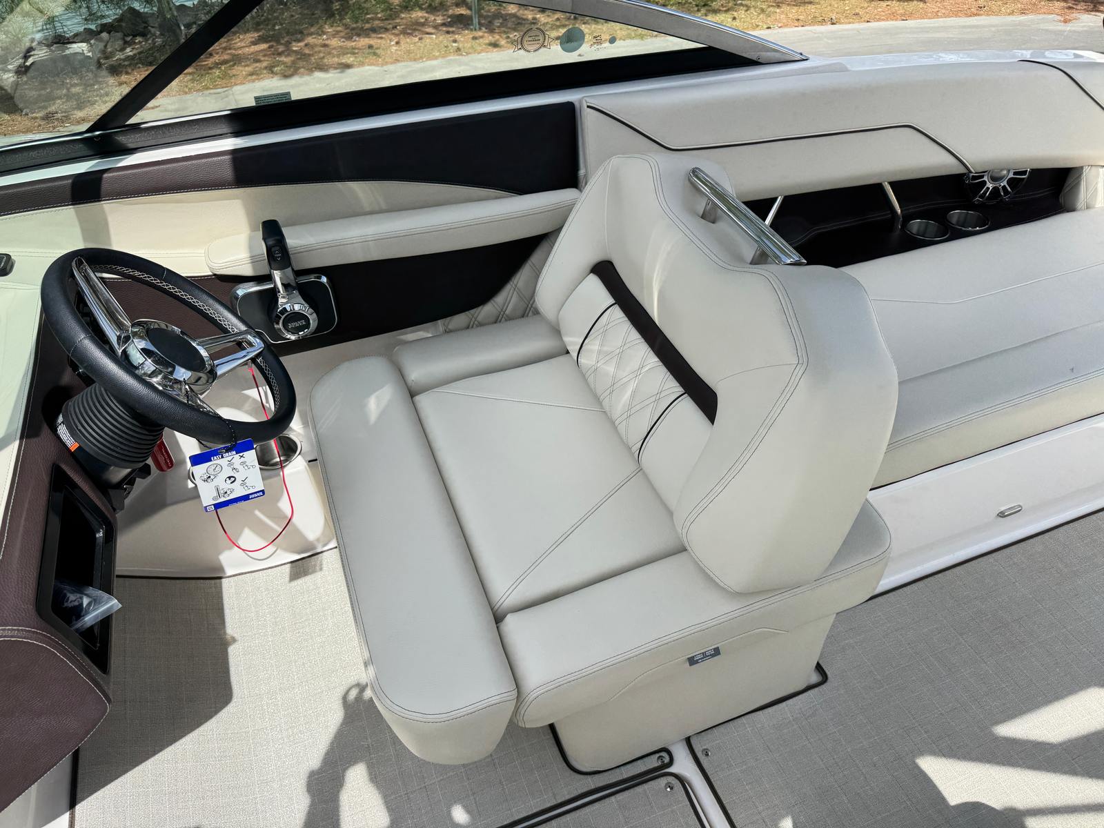 The 2024 Malibu Wakesetter 25 LSV is packed with features that make every outing enjoyable and convenient. Its spacious 25-foot layout offers plenty of room for passengers to relax, socialize, and gear up for action. The ergonomic seating ensures comfort during long days on the water, while the intuitive helm puts all controls within easy reach of the captain. The boat’s design maximizes both style and functionality, with ample storage compartments to keep your gear organized and out of the way. The robust construction and high-quality materials used throughout the boat reflect Malibu’s commitment to excellence and durability.