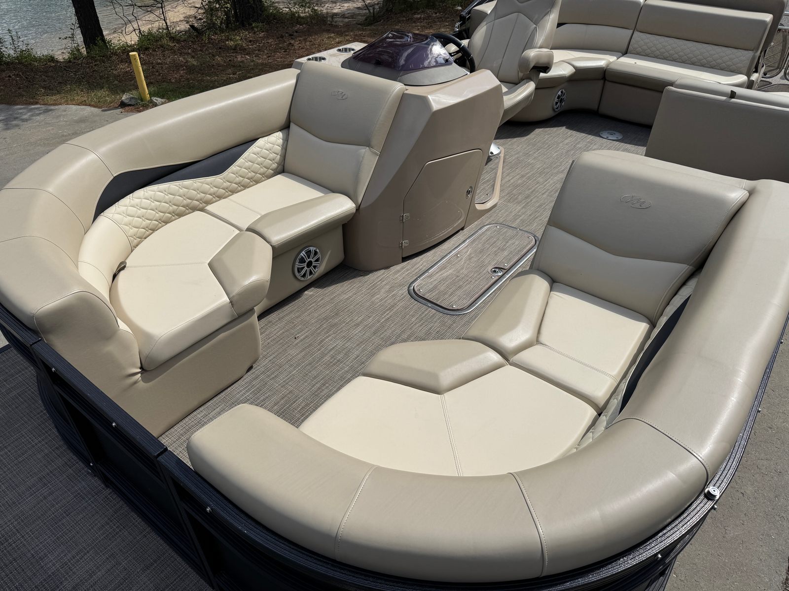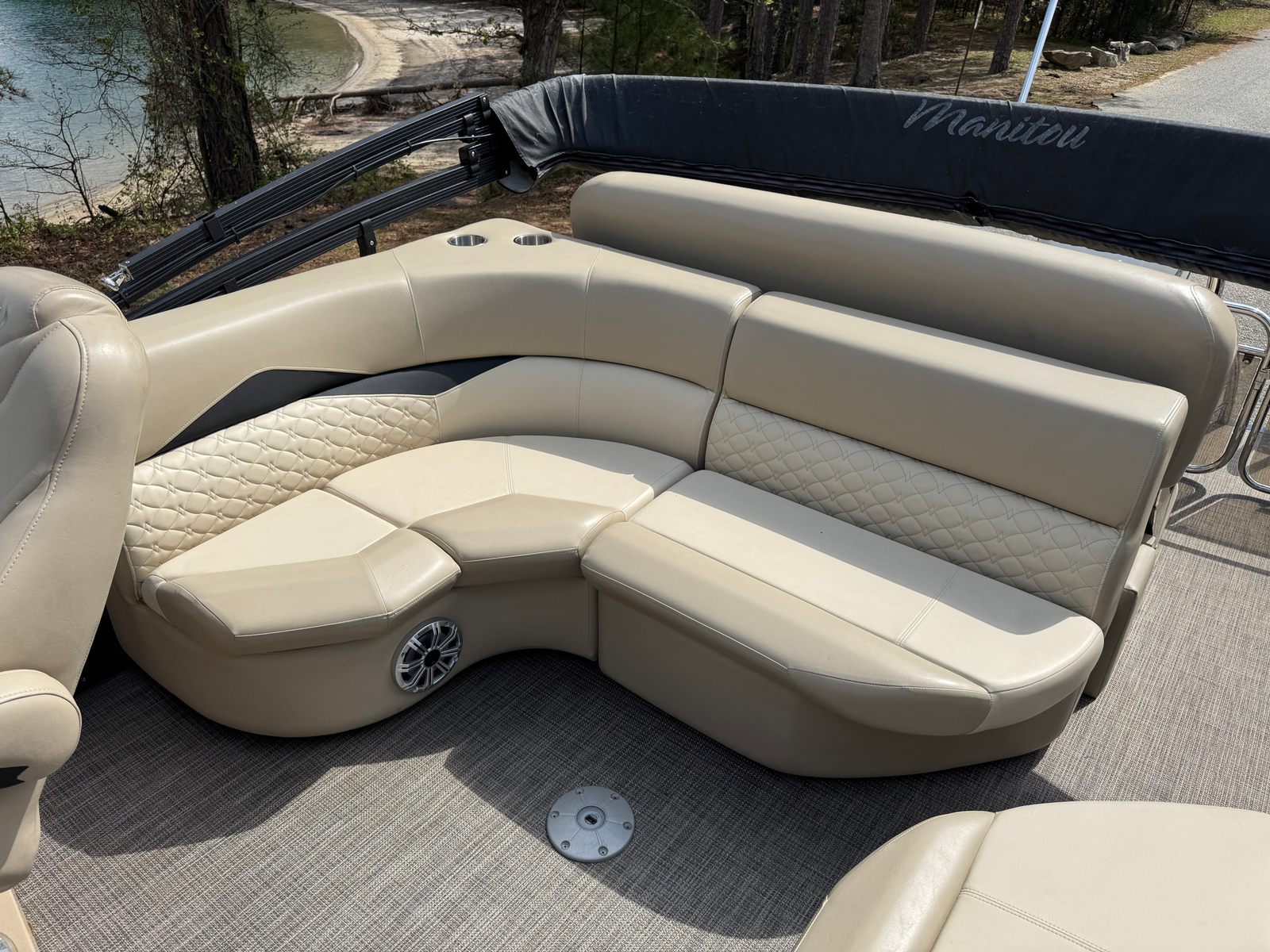Under the hood, the Manitou SES SHP 25 is powered by a single engine delivering a robust 300 horsepower. With only 256 engine hours, this pontoon boat offers plenty of life and excitement for its next owner. The powerful engine ensures smooth acceleration, impressive top speeds, and the ability to handle a variety of water conditions with ease. Whether you’re towing water toys, cruising at a leisurely pace, or seeking a little adrenaline, the performance of this pontoon boat for sale is sure to impress.