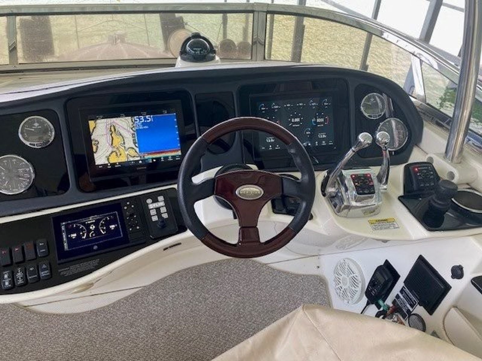 This freshwater Meridian 441 Sedan Bridge combines luxury, performance, and innovation in one striking yacht. Powered by twin Cummins 5.9L 480HP diesels with ZF pod drives and joystick controls, she delivers responsive handling, precise maneuverability, and the confidence of Skyhook station keeping. With only 955 hours on the engines and 1,177 hours on the generator, this yacht has been professionally maintained and is turnkey ready for your next adventure.