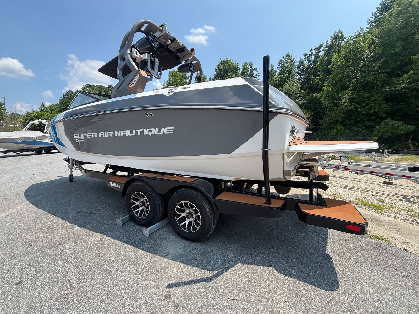 The 2018 Nautique Super Air G21 is a top-tier wakeboard and wakesurf boat, blending luxury, performance, and style. With its 21-foot frame, it’s perfect for handling big wakes in compact spaces. Powered by a robust PCM engine, it offers impressive torque and smooth handling. Its advanced Nautique Surf System allows customizable waves for any rider's skill level, while the plush interior, touchscreen helm, and premium sound system ensure comfort and entertainment on the water. Ideal for water sports enthusiasts seeking precision, comfort, and reliability in a sleek package.
