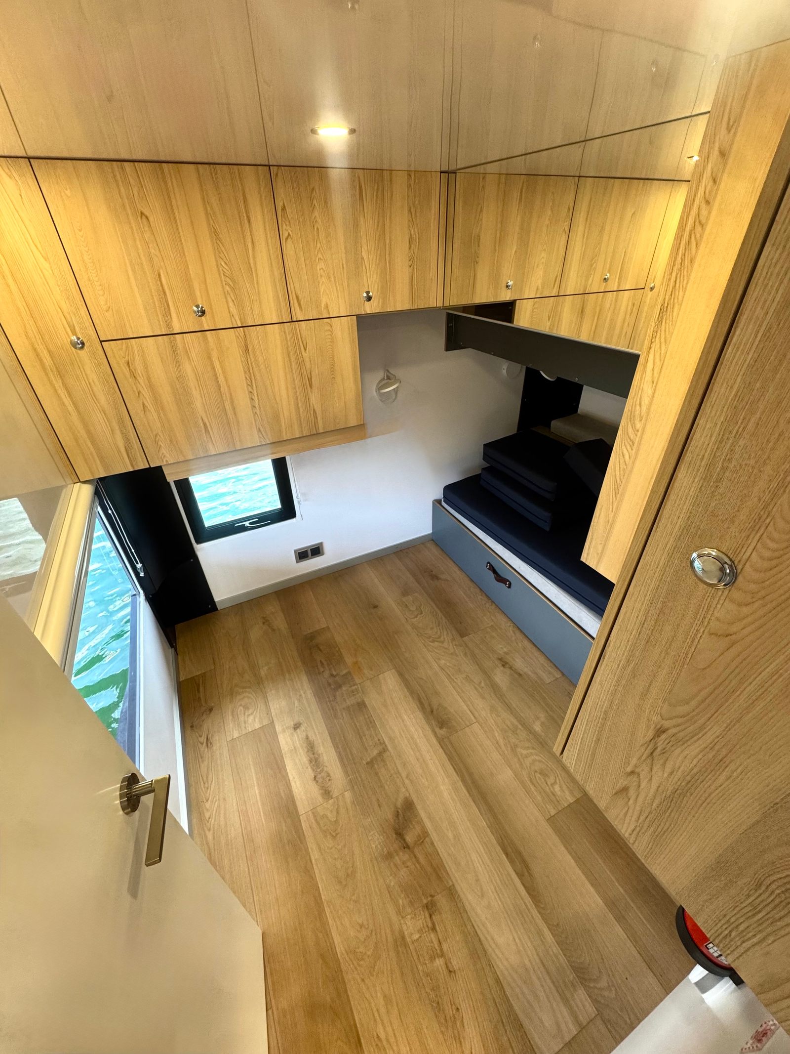 - Front cupboard with counter top in upper cabin