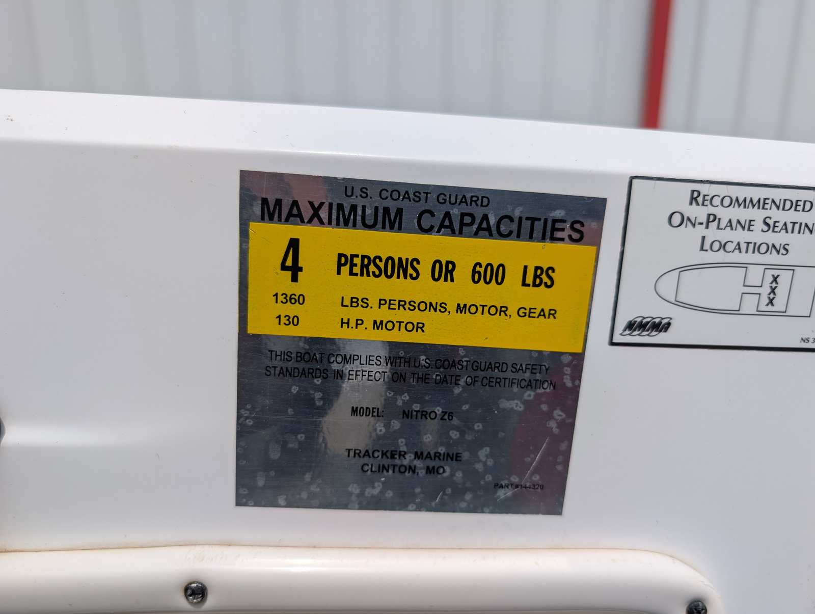 The Nitro Z6 is thoughtfully designed with features that cater to both serious anglers and those seeking leisurely days on the water. Its 18-foot length provides ample deck space for casting, reeling, and moving around comfortably. The boat’s layout is optimized for convenience, with strategically placed storage compartments to keep your gear organized and easily accessible. The Z6’s durable construction and attention to detail are evident in every aspect, from the sturdy hull to the ergonomic seating arrangements.As a used bass boat, the 2008 Nitro Z6 has been crafted to withstand the rigors of frequent use while maintaining its sleek appearance and functionality. The single-engine setup not only simplifies maintenance but also enhances fuel efficiency, making it an economical choice for extended outings. The low engine hours further underscore the boat’s excellent condition, offering peace of mind to prospective buyers.