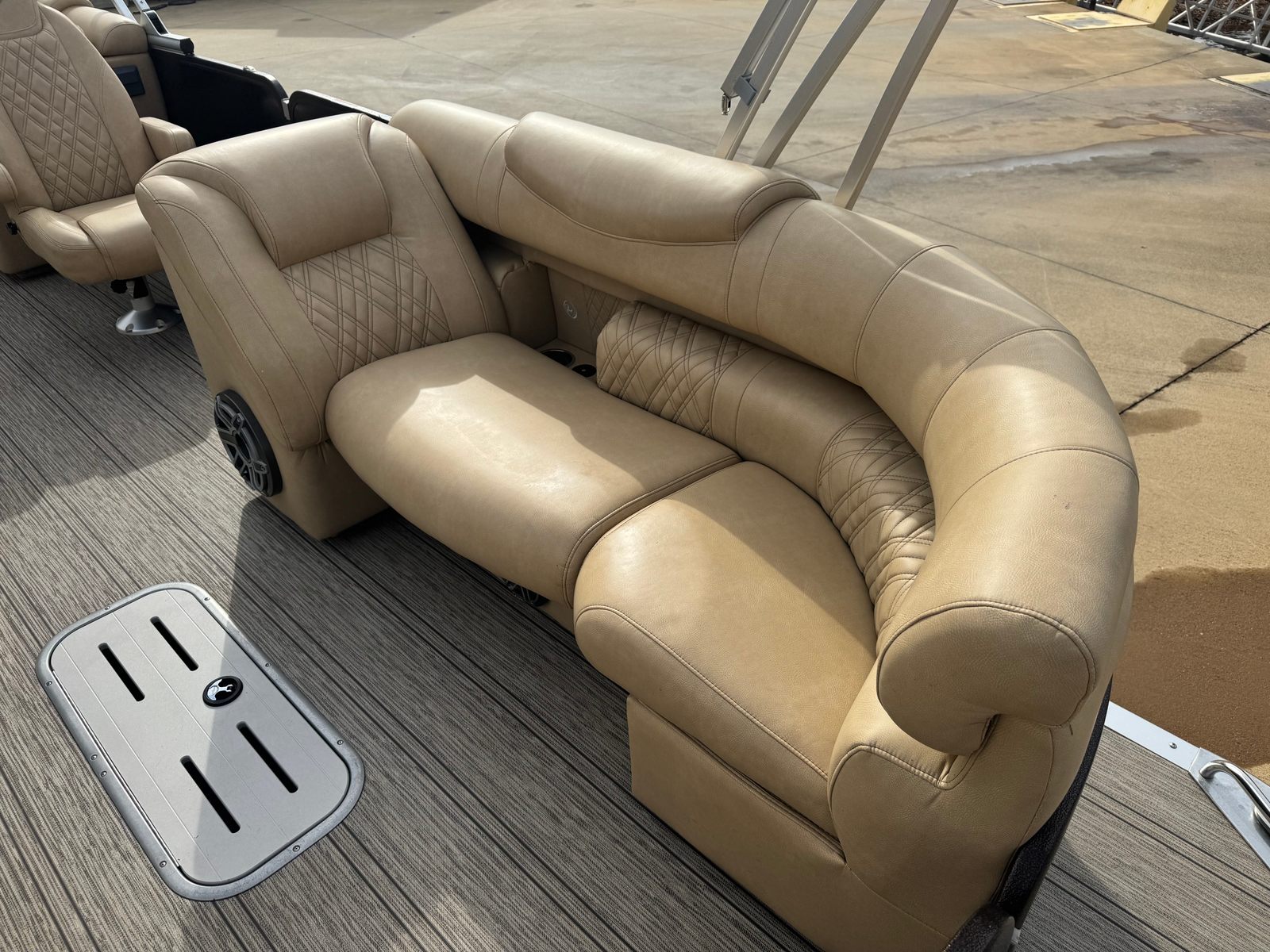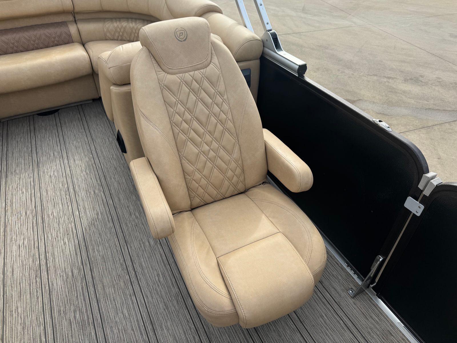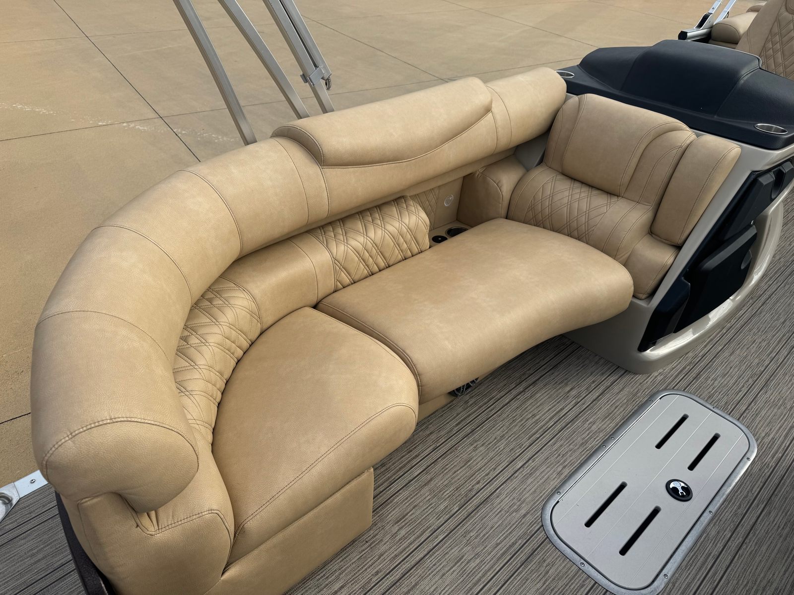 The 2021 Premier 230 Intrigue RF is packed with features that enhance both functionality and enjoyment on the water. The RF (Rear Facing) layout is designed for optimal social interaction, allowing guests to relax and take in the views from multiple vantage points. The spacious deck provides plenty of room for lounging, sunbathing, or gathering with friends and family. High-quality seating ensures comfort during long days on the water, while the thoughtful layout maximizes usable space.This pontoon boat for sale is engineered with Premier’s renowned craftsmanship, ensuring durability and longevity. The pontoon’s design emphasizes stability and safety, making it an ideal choice for boaters of all experience levels. The 2021 Premier 230 Intrigue RF is also equipped with modern conveniences that make every outing enjoyable, from easy-to-navigate controls to stylish finishes that create a welcoming atmosphere.