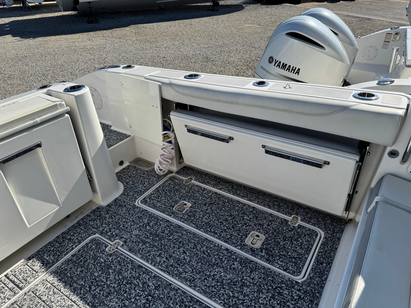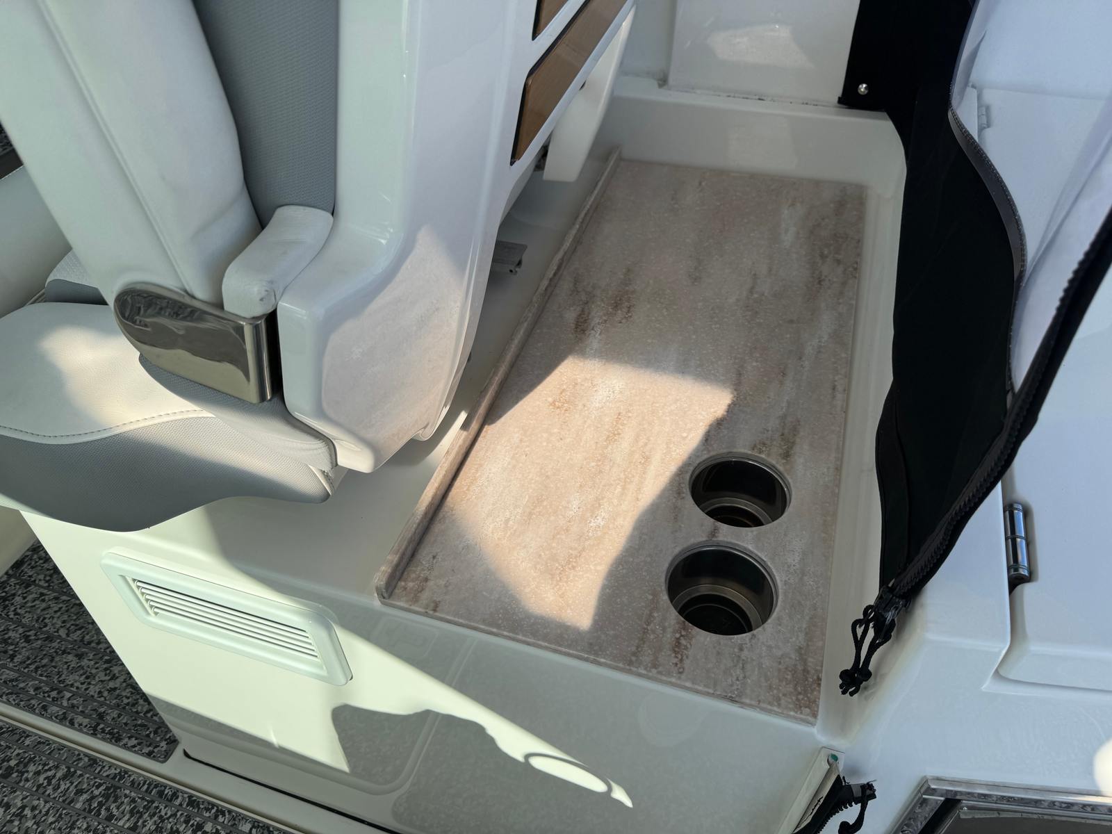 This Pursuit boat for sale is as practical as it is enjoyable. The dual console configuration makes docking and maneuvering straightforward, even for less experienced boaters. Ample storage compartments keep your belongings organized and out of the way, while the well-designed helm offers excellent visibility and control. The boat’s efficient engines provide a balance of power and fuel economy, allowing you to spend more time on the water and less time at the fuel dock. Whether you are planning a weekend getaway or a quick afternoon escape, the Pursuit DC 326 is equipped to handle it all with ease.