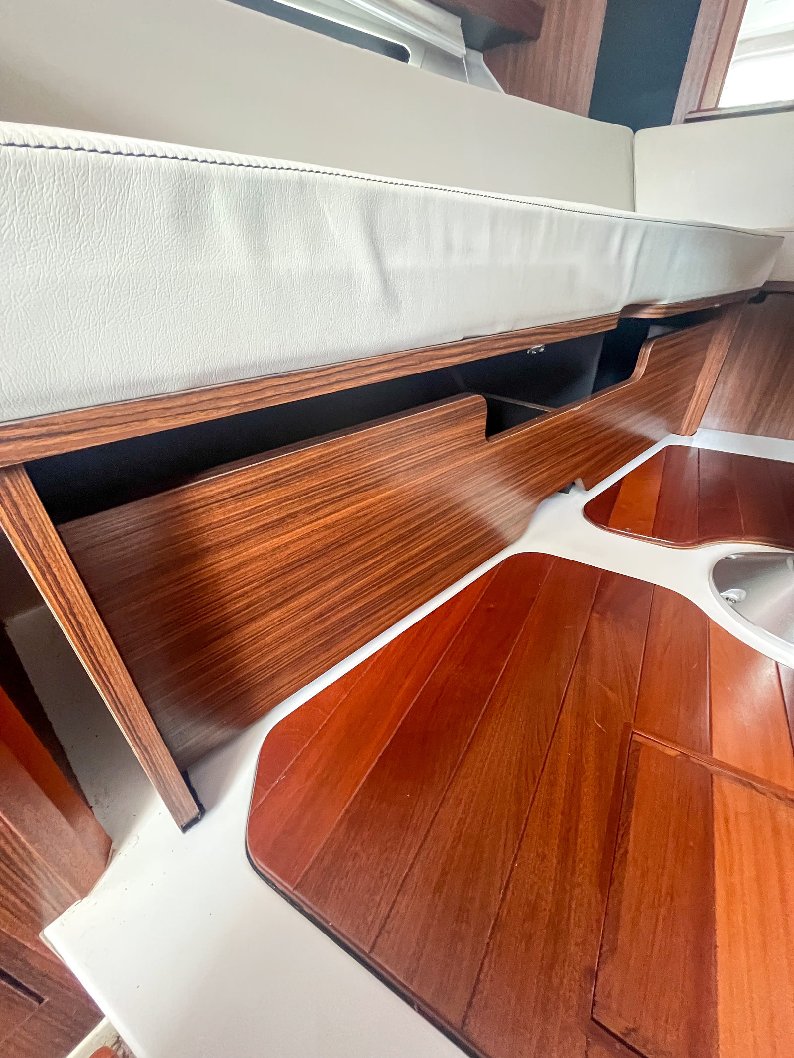 Beyond its recreational appeal, the Pursuit OS 355 excels in practical aspects that make ownership a breeze. The ample storage space allows you to stow away gear, supplies, and personal items with ease, keeping the deck and cabin clutter-free. Its thoughtful design ensures that docking and maneuvering are straightforward, even for those new to boating. Fuel efficiency is another highlight, thanks to the advanced engineering of its twin engines, allowing you to enjoy longer trips without frequent refueling stops. Maintenance is simplified by Pursuit’s reputation for durability and reliability, ensuring that your investment remains in excellent condition for years to come.