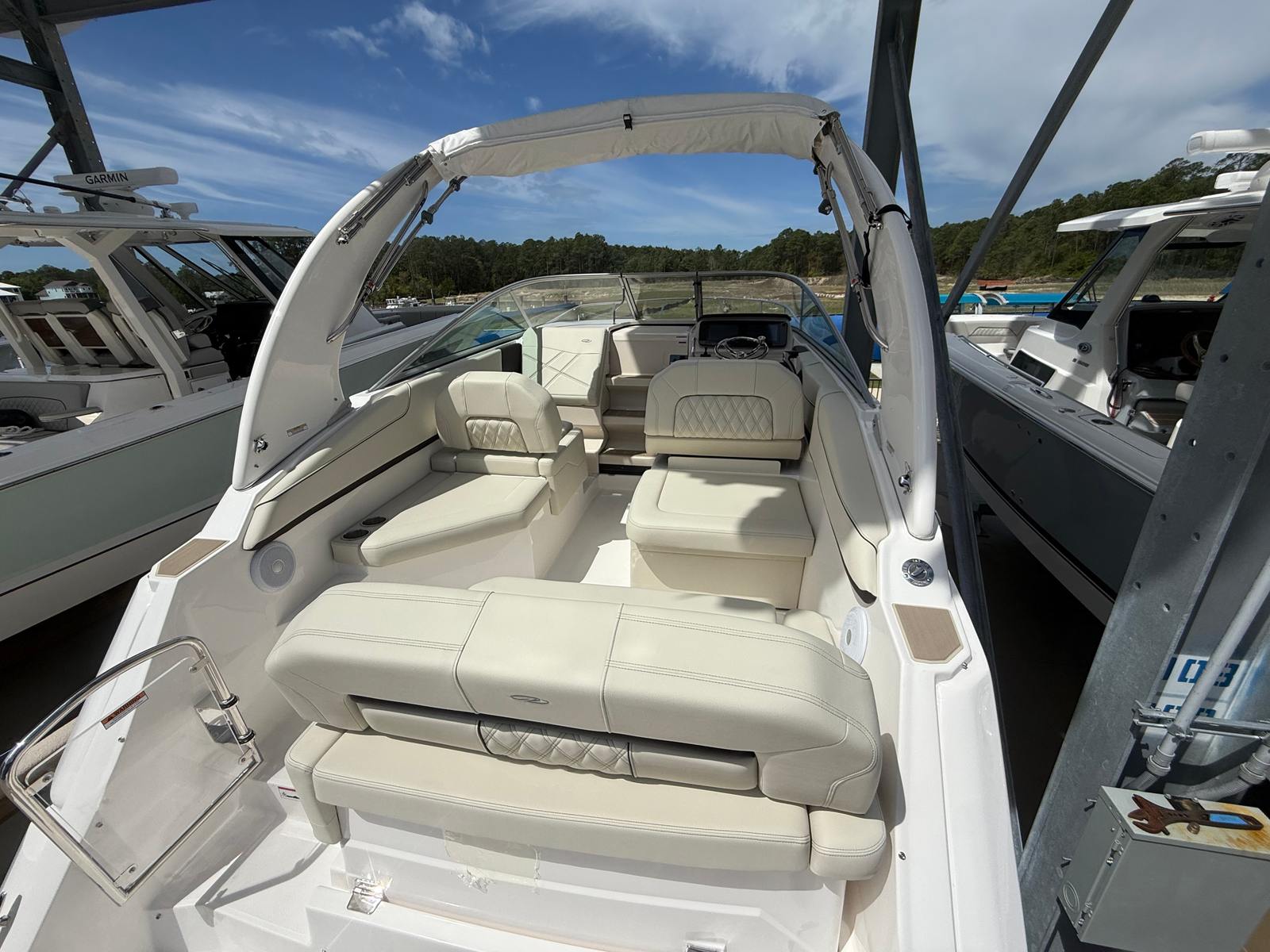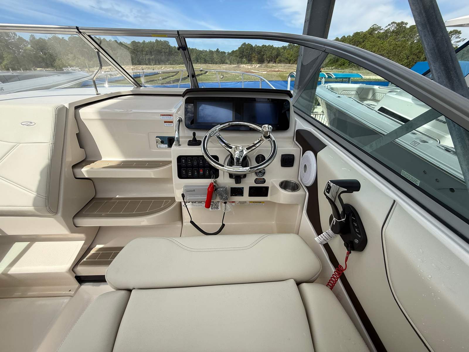 This new cruiser boat for sale is loaded with premium features designed to enhance your time on the water. The cockpit cover and White Stamoid Upgrade Bimini Top provide ample shade and protection from the elements, allowing you to relax in comfort regardless of the weather. The Mediterranean Blue canvas and Snowcap Coastal accents add a touch of elegance and style, while the Mosaic countertops in the galley area offer a modern, upscale feel.For those who appreciate convenience and comfort, the Regal 26 XO is equipped with a gas-powered 110V generator and air conditioning, ensuring a pleasant onboard environment even during the hottest summer days. The bow thruster adds an extra layer of control, making docking and close-quarters maneuvering a breeze. Every detail of this Regal boat for sale is thoughtfully designed to maximize your enjoyment and minimize hassle.