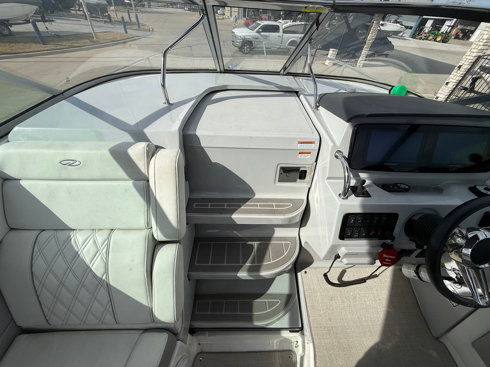 The Regal 28 Express boasts a range of features designed to enhance your boating lifestyle. Its spacious layout provides ample room for relaxation and socializing, with comfortable seating areas that invite you to unwind and enjoy the scenery. The cabin is thoughtfully appointed to maximize comfort, offering a welcoming retreat for overnight stays or extended journeys. The cockpit is designed for convenience and functionality, with intuitive controls and easy access to all essential systems.This Regal boat for sale is crafted with high-quality materials and finishes, reflecting the brand’s commitment to excellence. The hull design promotes stability and smooth cruising, while the deck layout ensures safety and ease of movement for all passengers. Every detail, from the ergonomic helm to the stylish accents, is engineered to create a premium boating experience.