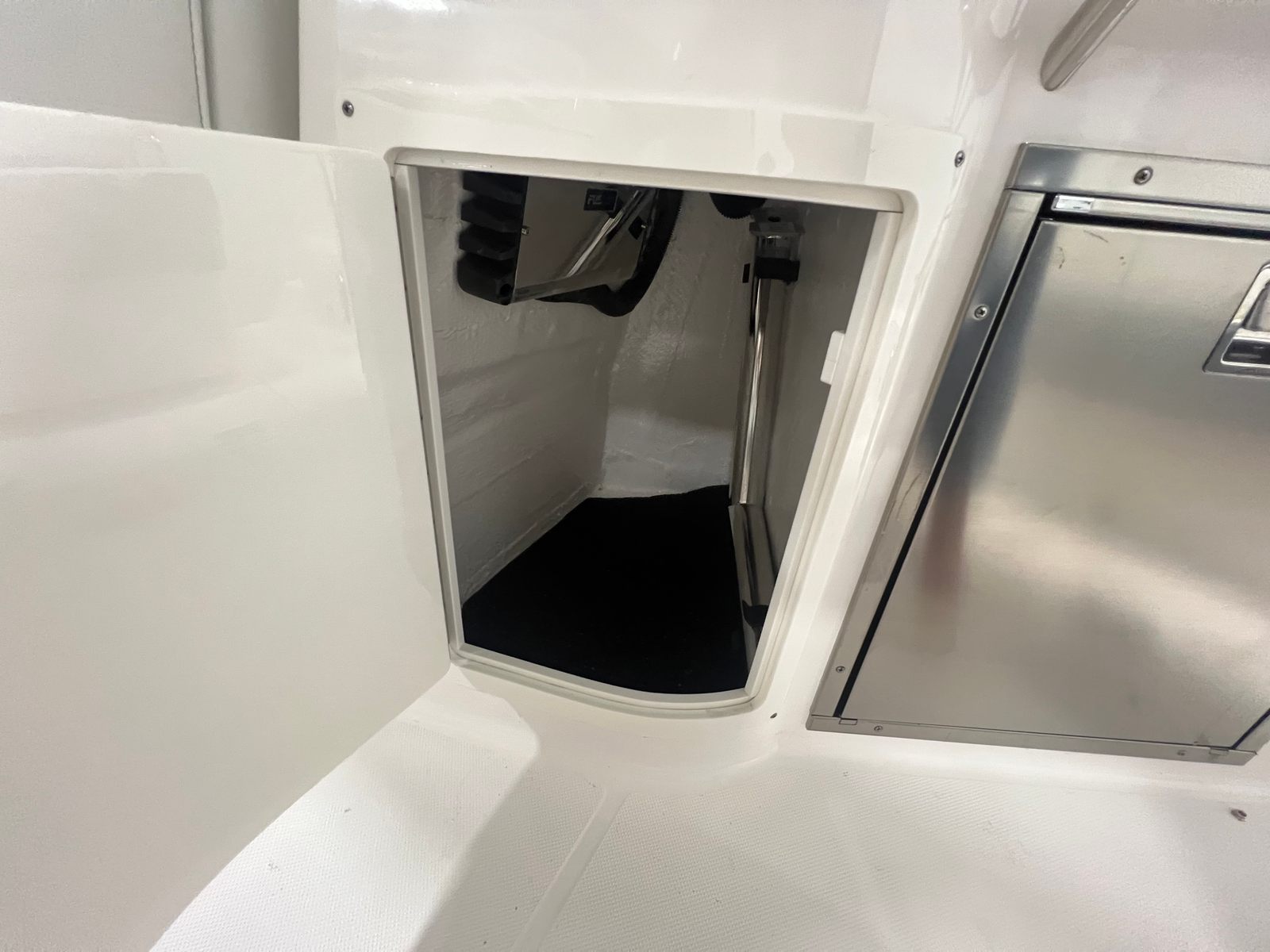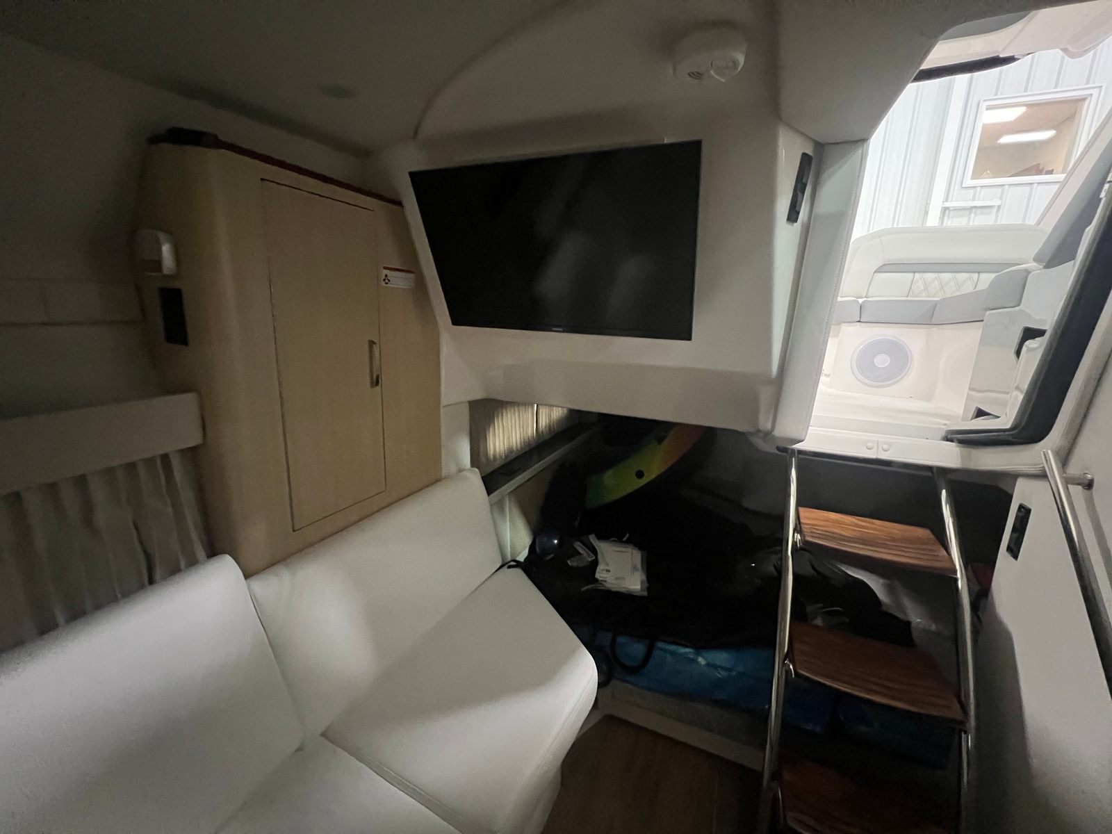 The Regal 33 Express is designed with practicality in mind, making ownership easy and enjoyable. The anchor windlass with all-chain operation streamlines the anchoring process, saving time and effort when you want to stop and enjoy the scenery. The cockpit refrigerator ensures your favorite beverages and snacks are always within reach, perfect for long days on the water.The companionway screen door enhances ventilation while maintaining comfort, and the cockpit seagrass mat provides a soft, non-slip surface for added safety. The boat’s length and layout offer generous storage options for gear, supplies, and personal items, helping you stay organized and prepared for any adventure.Docking is simplified by the cruiser’s responsive handling and dual-engine configuration, allowing for precise movements in tight spaces. The fuel-efficient design ensures you can spend more time exploring and less time refueling, making every trip more enjoyable and cost-effective.