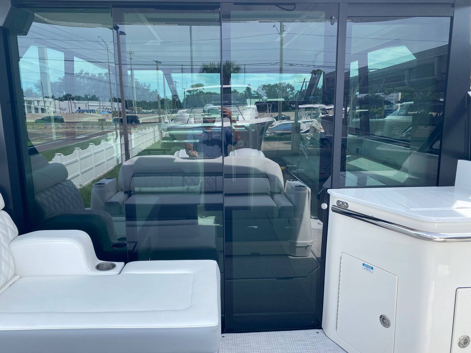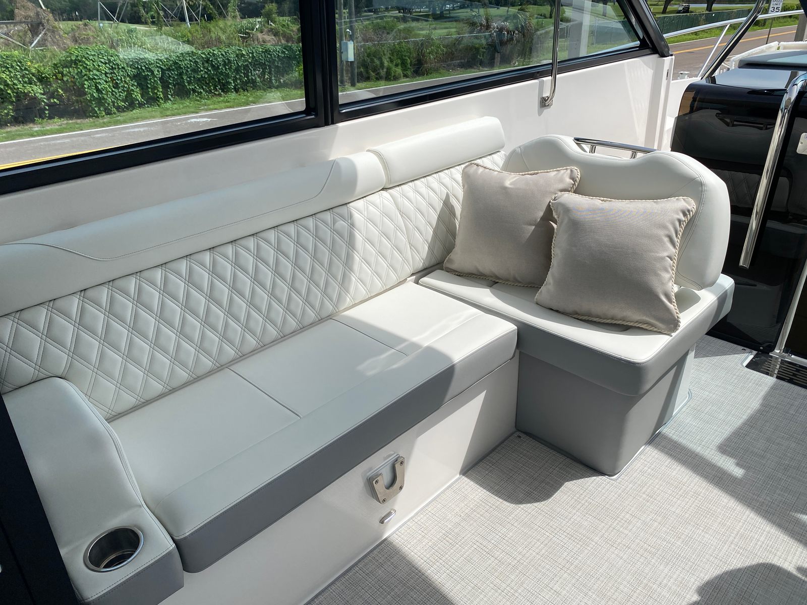 Practicality meets luxury in the Regal 36 XO. The yacht’s thoughtful design includes ample storage for gear, supplies, and personal items, making it easy to keep your space organized and clutter-free. Docking is a breeze thanks to the responsive twin engines, allowing you to navigate marinas and harbors with confidence. The yacht’s efficient performance also means you can enjoy longer trips without worrying about excessive fuel consumption.The cockpit seagrass mat provides a non-slip surface, enhancing safety while adding a touch of sophistication. The Strato Wind countertops are both durable and stylish, making them perfect for preparing meals or serving drinks during gatherings. Every detail of the Regal 36 XO is designed to make ownership easy and enjoyable, so you can focus on making memories with your loved ones.