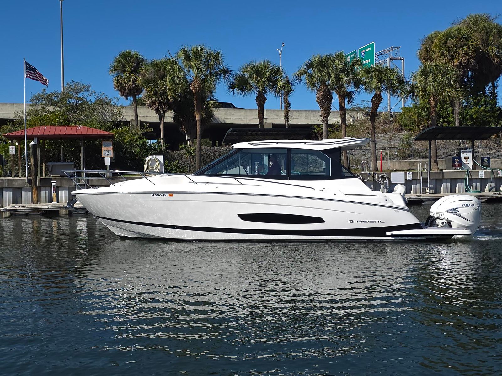 The 2023 Regal 36 XO is thoughtfully designed with features that enhance both comfort and convenience. Its spacious deck layout allows for seamless movement, while the luxurious seating arrangements invite you and your guests to relax in style. The yacht’s modern helm station is equipped with advanced controls, ensuring an intuitive and enjoyable piloting experience. With a length of 37.25 feet, this yacht offers generous space for socializing, sunbathing, or simply soaking in the breathtaking views.Special features of the Regal 36 XO include a sophisticated entertainment area, ample storage solutions, and a well-appointed cabin that provides a retreat from the sun or a cozy spot for overnight stays. Every detail is crafted to elevate your time on the water, making this Regal boat for sale a standout choice for discerning buyers.