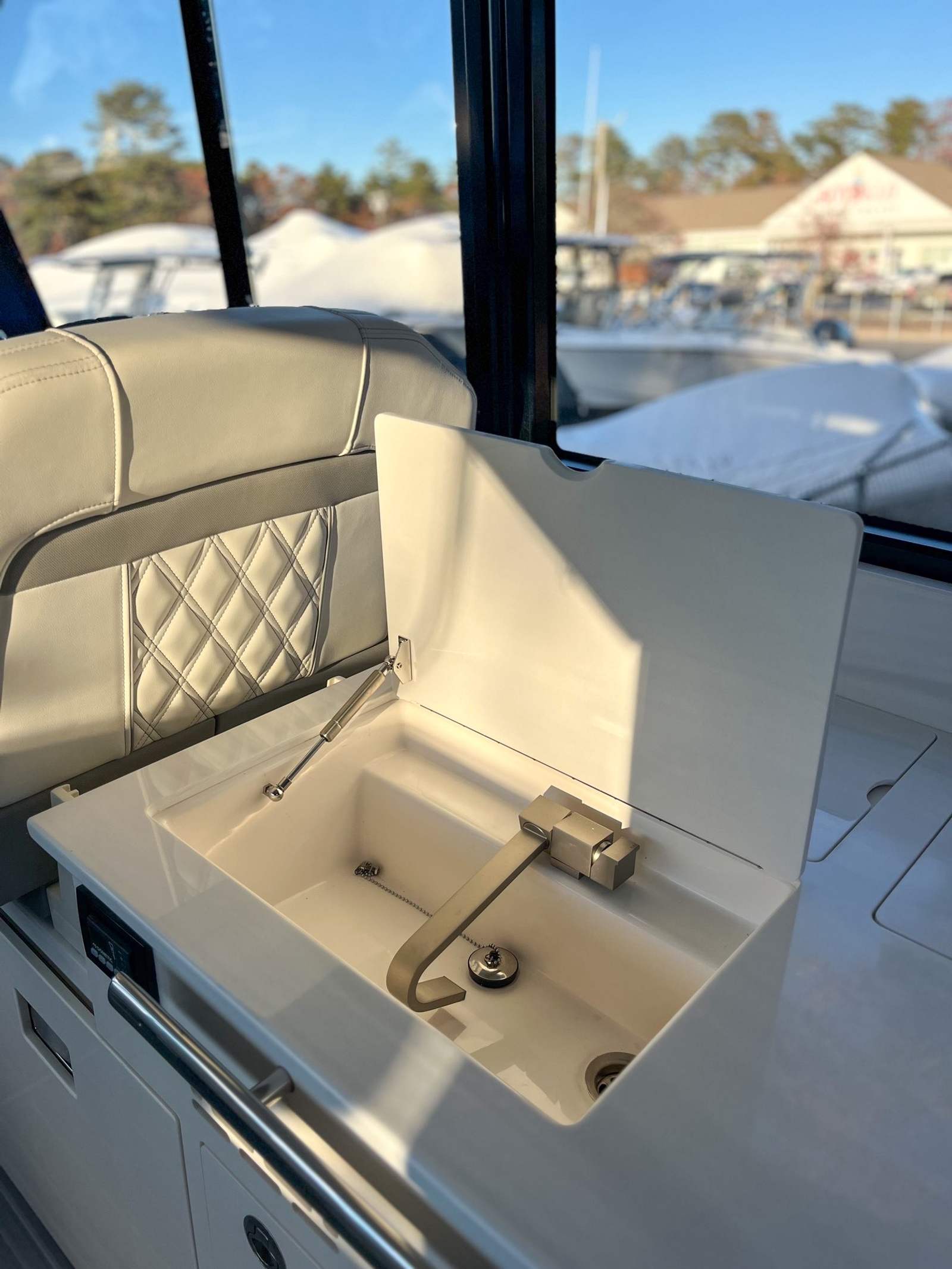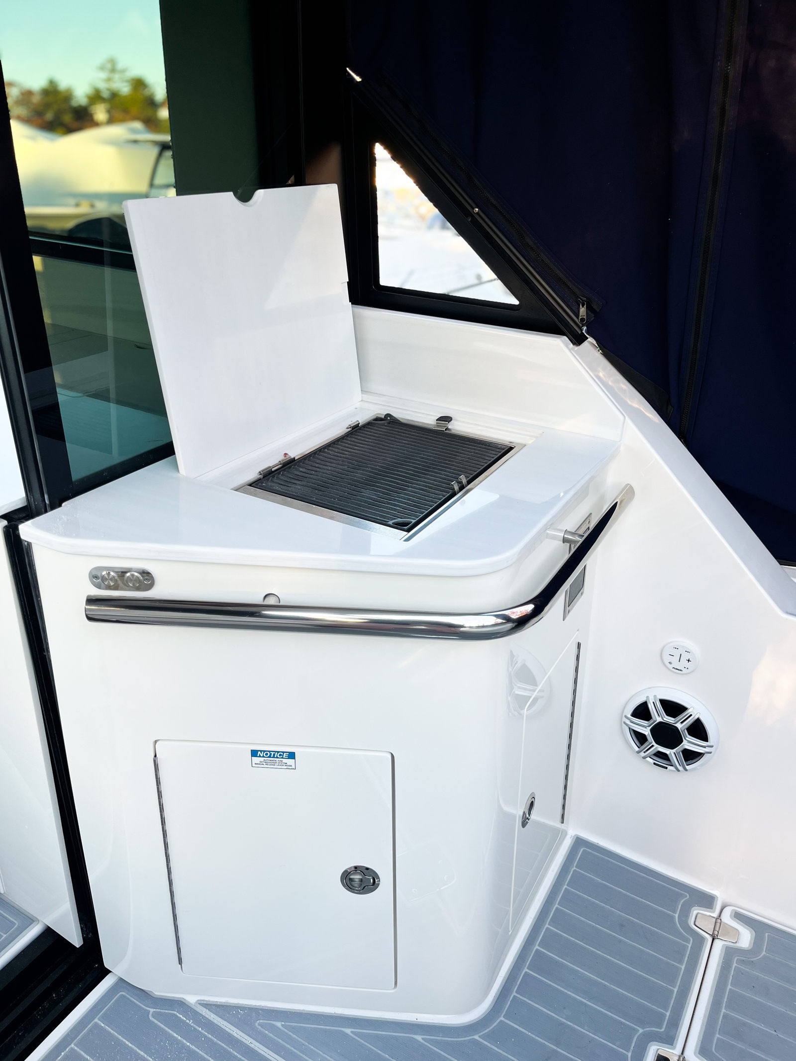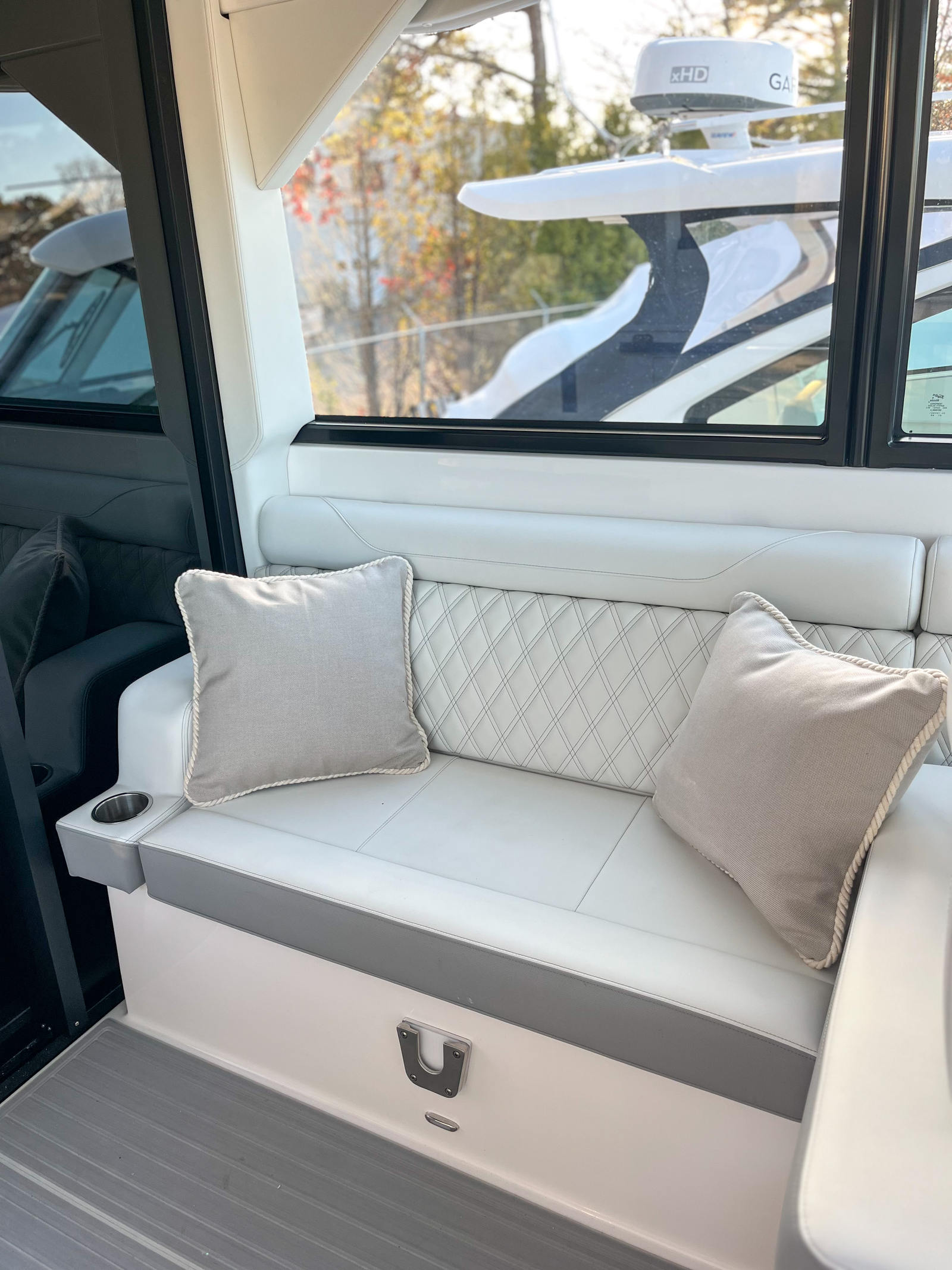 Step aboard the Regal 36 XO and discover a world of premium features designed for comfort and convenience. The yacht’s coastal package enhances its versatility, making it ideal for both short trips and extended journeys. The Mediterranean Blue canvas adds a touch of elegance, while the salon floor in toasted oak creates a warm, inviting atmosphere. Strato Wind countertops provide a modern aesthetic and durable workspace for onboard entertaining.Enjoy the convenience of the manual bow sunshade system, offering protection from the sun while you relax on deck. The titanium anchor windlass with rope and chain ensures secure anchoring, while the cockpit refrigerator keeps your refreshments chilled and ready. Stay connected and safe with the Garmin VHF radio, a vital tool for communication on the water.
