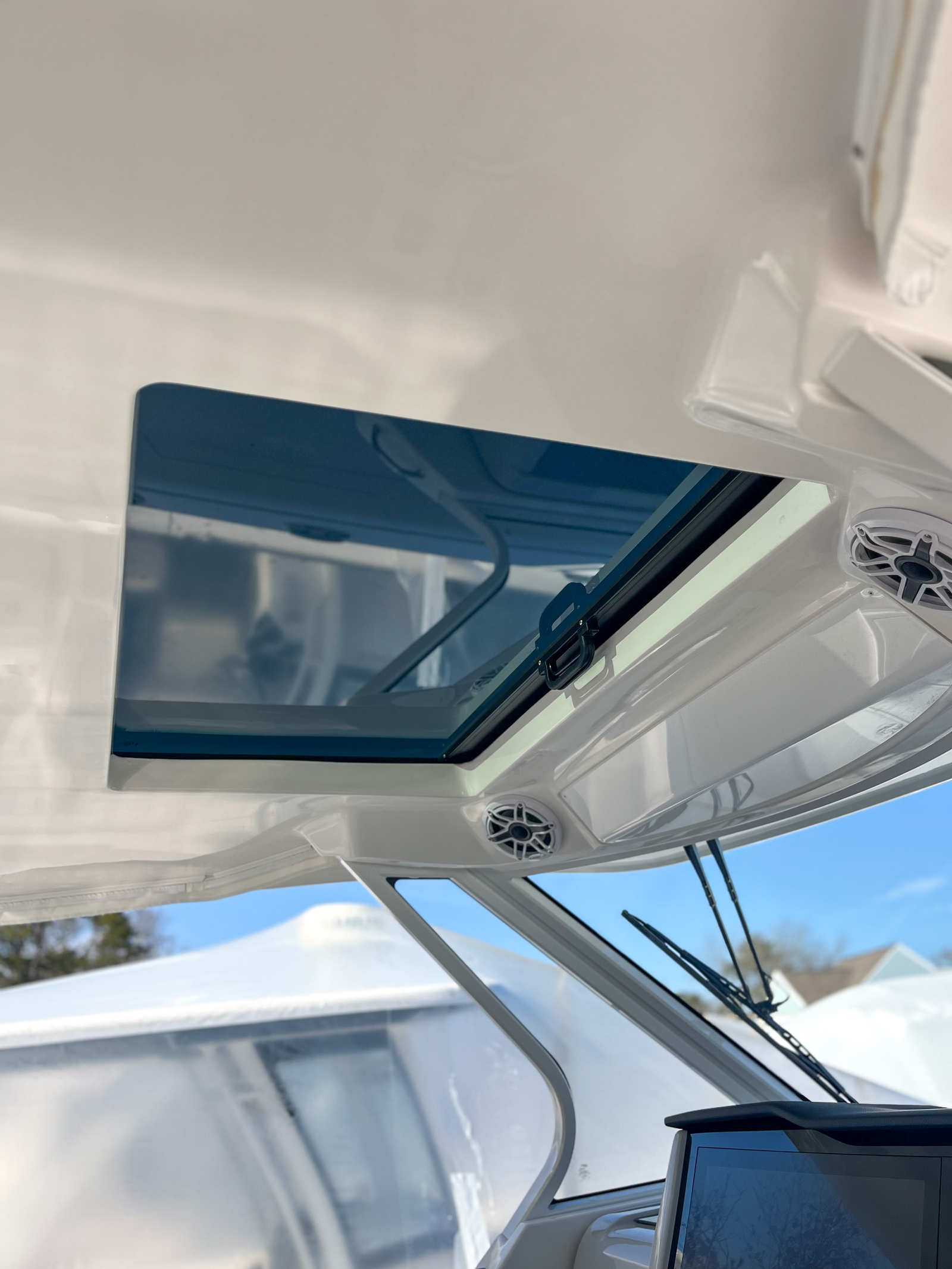 The Regal 38 SAV is packed with special features that elevate your boating experience. The coastal package enhances the yacht’s durability and style, making it ideal for a variety of marine environments. Synthetic teak steps add a touch of elegance and provide a non-slip surface for safety and comfort. The Snowcap finish gives the yacht a crisp, modern look, while the Strato Wind countertops offer both beauty and functionality in the galley and entertainment areas.A gray water system is included, promoting eco-friendly operation and convenience during extended trips. The Zone 6: White interior creates a bright, inviting atmosphere, perfect for relaxing or entertaining guests. The anchor windlass with rope and chain ensures easy and secure anchoring, while fender clips make docking and undocking a breeze. Digital switching puts control at your fingertips, allowing you to manage onboard systems with ease. The cockpit refrigerator keeps your refreshments chilled and ready for any occasion, adding a touch of luxury to your time on the water.