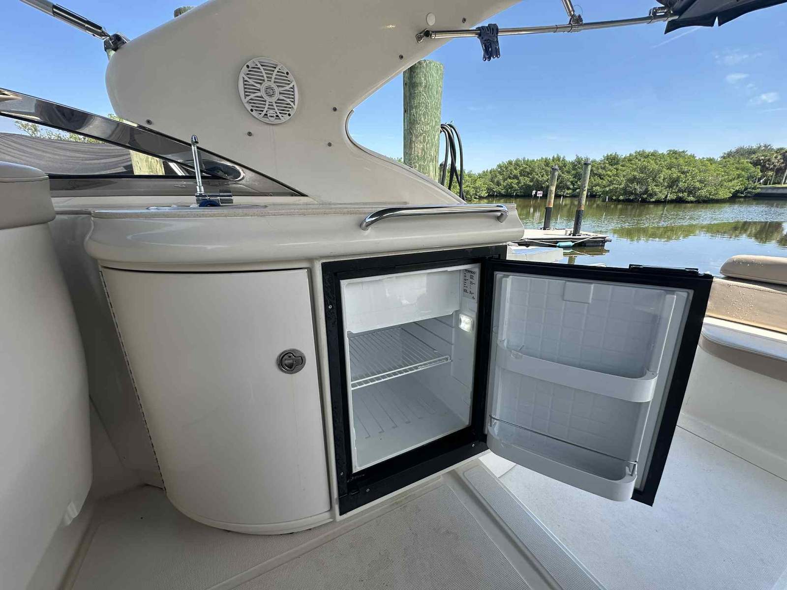 In addition to its recreational appeal, the Regal 4160 Commodore is designed with practical features that make ownership a breeze. The ample storage throughout the vessel allows you to bring along all the gear and supplies you need for extended trips, while the thoughtful layout makes it easy to access everything you need. Docking is simplified by the responsive handling provided by the twin engines, giving you confidence in tight spaces.Fuel efficiency is another key benefit, with the engines designed to deliver strong performance without excessive consumption. This means you can spend more time enjoying the water and less time worrying about refueling. The durable construction and quality materials used throughout the boat ensure that it will stand up to the rigors of regular use, providing years of reliable enjoyment.