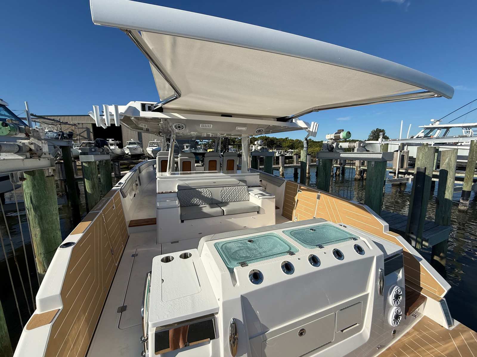 The Regal 43 SAV shines in a variety of scenarios, making it a versatile choice for any boating enthusiast. For family outings, the spacious deck and comfortable seating create the perfect environment for making memories on the water. The yacht’s entertainment features, including the cockpit television, keep everyone engaged and entertained.For those who love fishing, the open layout and easy access to the water make the 43 SAV an excellent platform for casting lines and reeling in the day’s catch. If luxury getaways are more your style, the elegant finishes and advanced amenities provide a five-star experience, whether you are anchored in a quiet cove or cruising to a vibrant waterfront destination.