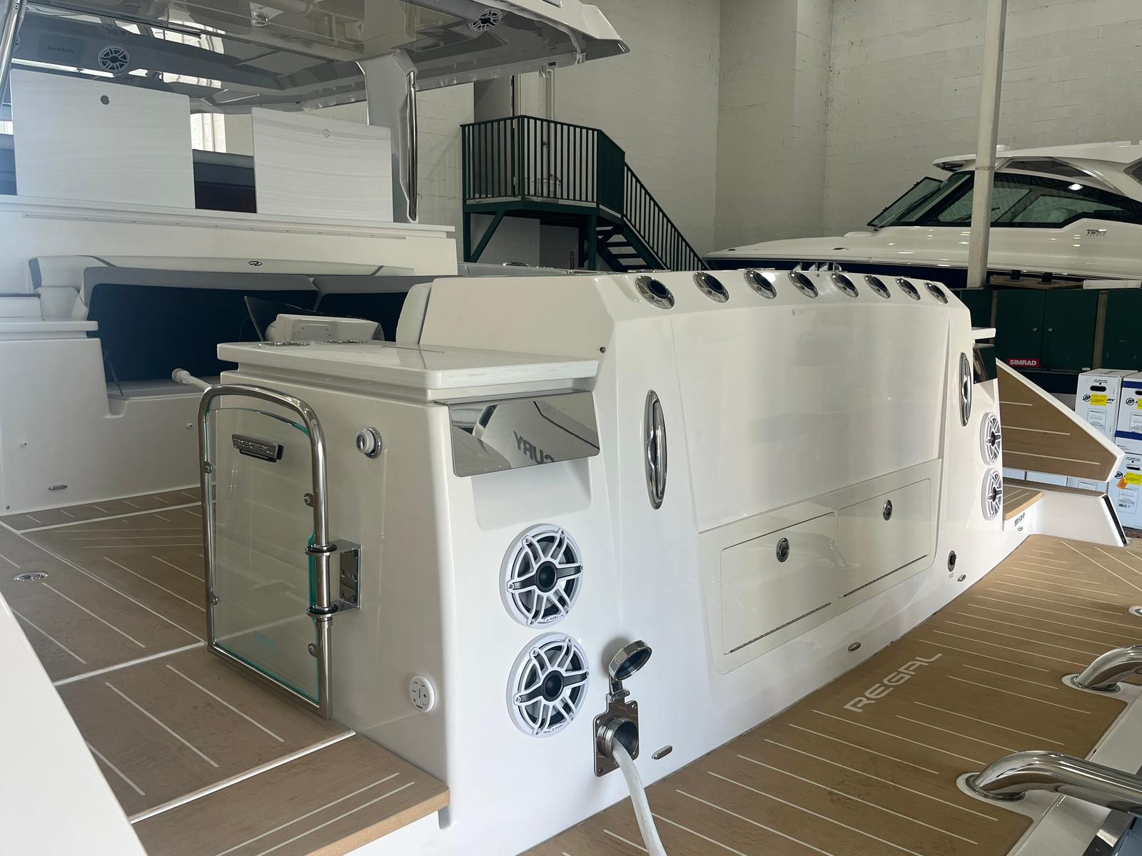 The Regal 50 SAV is designed with practical ownership in mind. Its generous storage options make it easy to stow all your gear, from water toys to picnic supplies, ensuring that everything you need is always within reach. The yacht’s thoughtful layout and intuitive controls make docking and maneuvering straightforward, even in busy marinas or tight spaces. Thanks to the efficiency of the Mercury Verado engines, you can enjoy extended outings without worrying about frequent refueling stops. Every aspect of the 50 SAV is engineered to make your time on the water as enjoyable and hassle-free as possible.